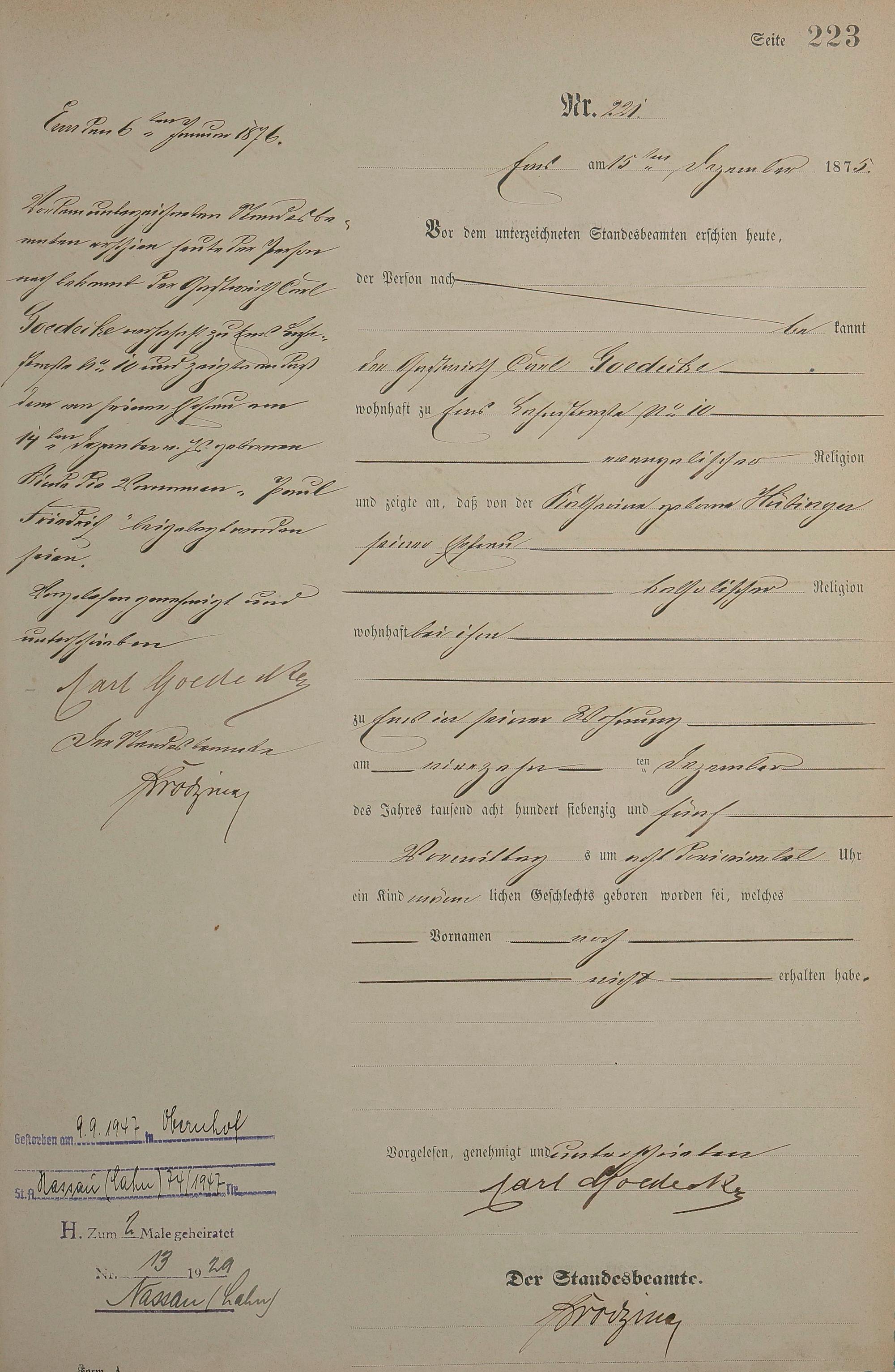 Geburtsregister 1875