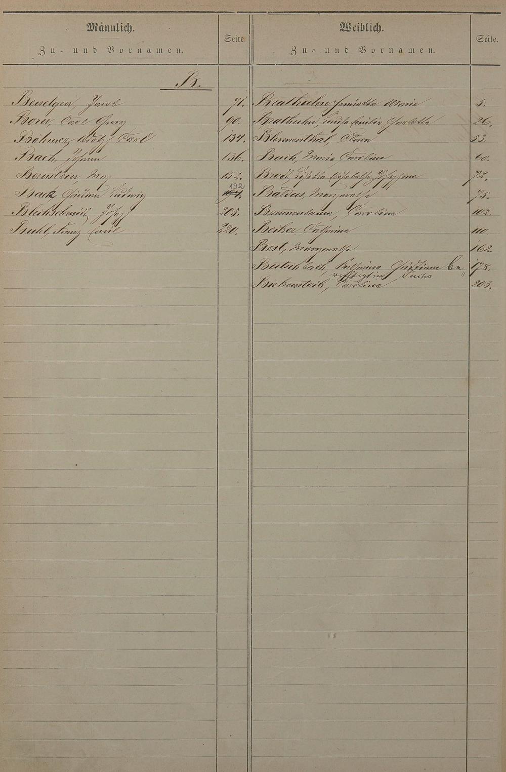 Register nachgereichter Vornamen