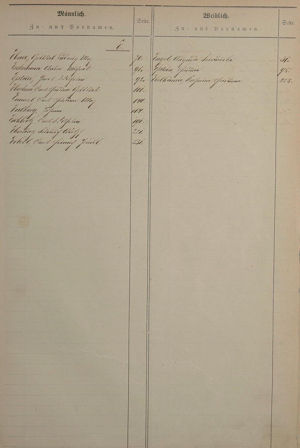 Register nachgereichter Vornamen