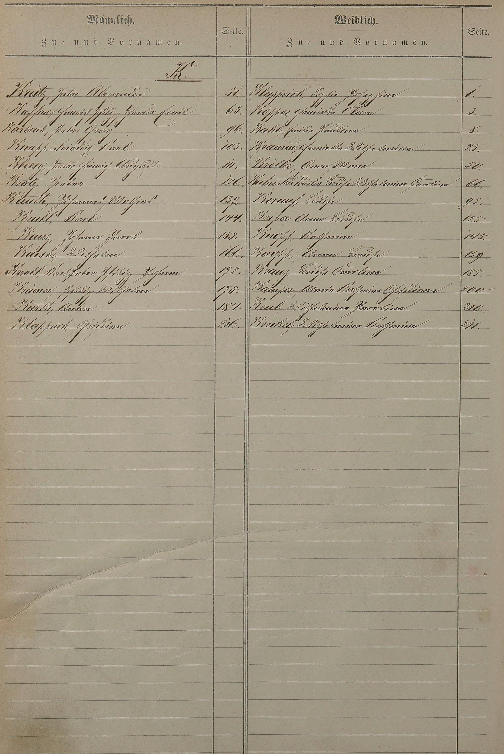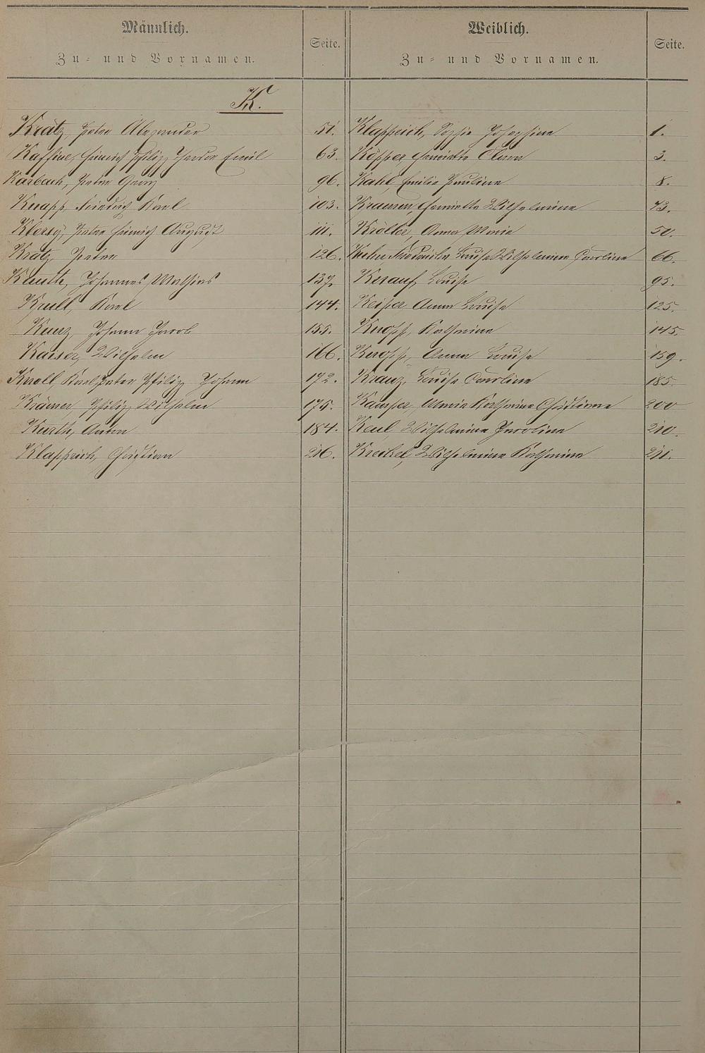 Register nachgereichter Vornamen