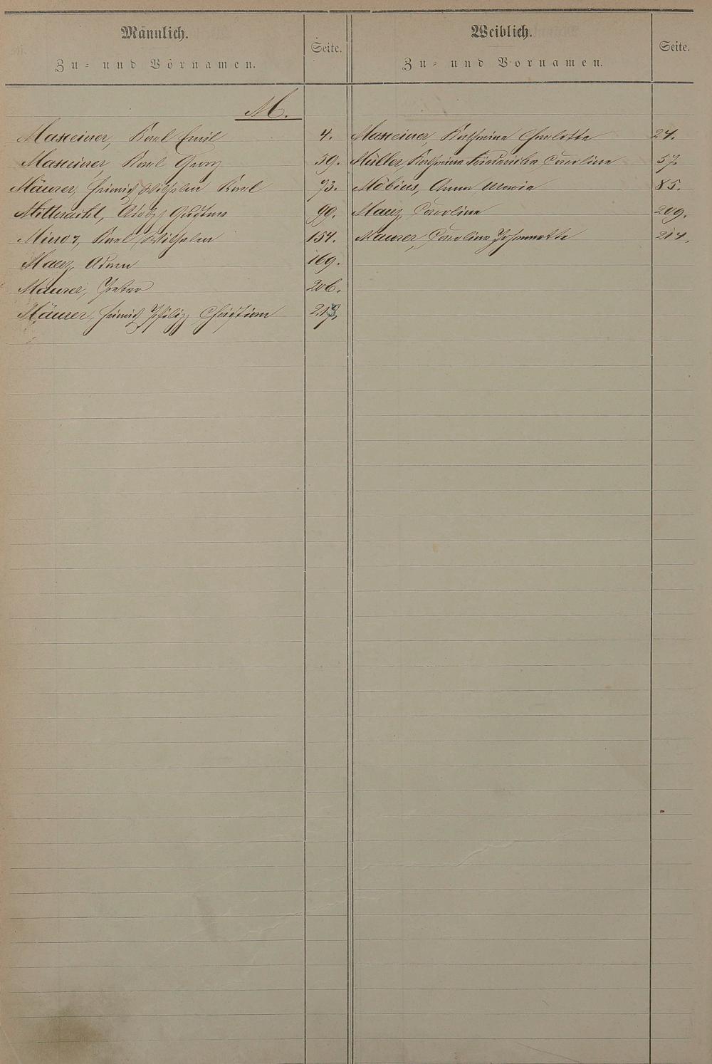 Register nachgereichter Vornamen