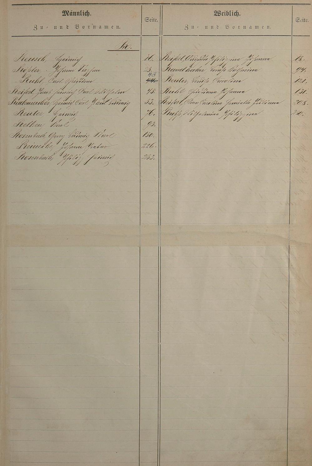 Register nachgereichter Vornamen