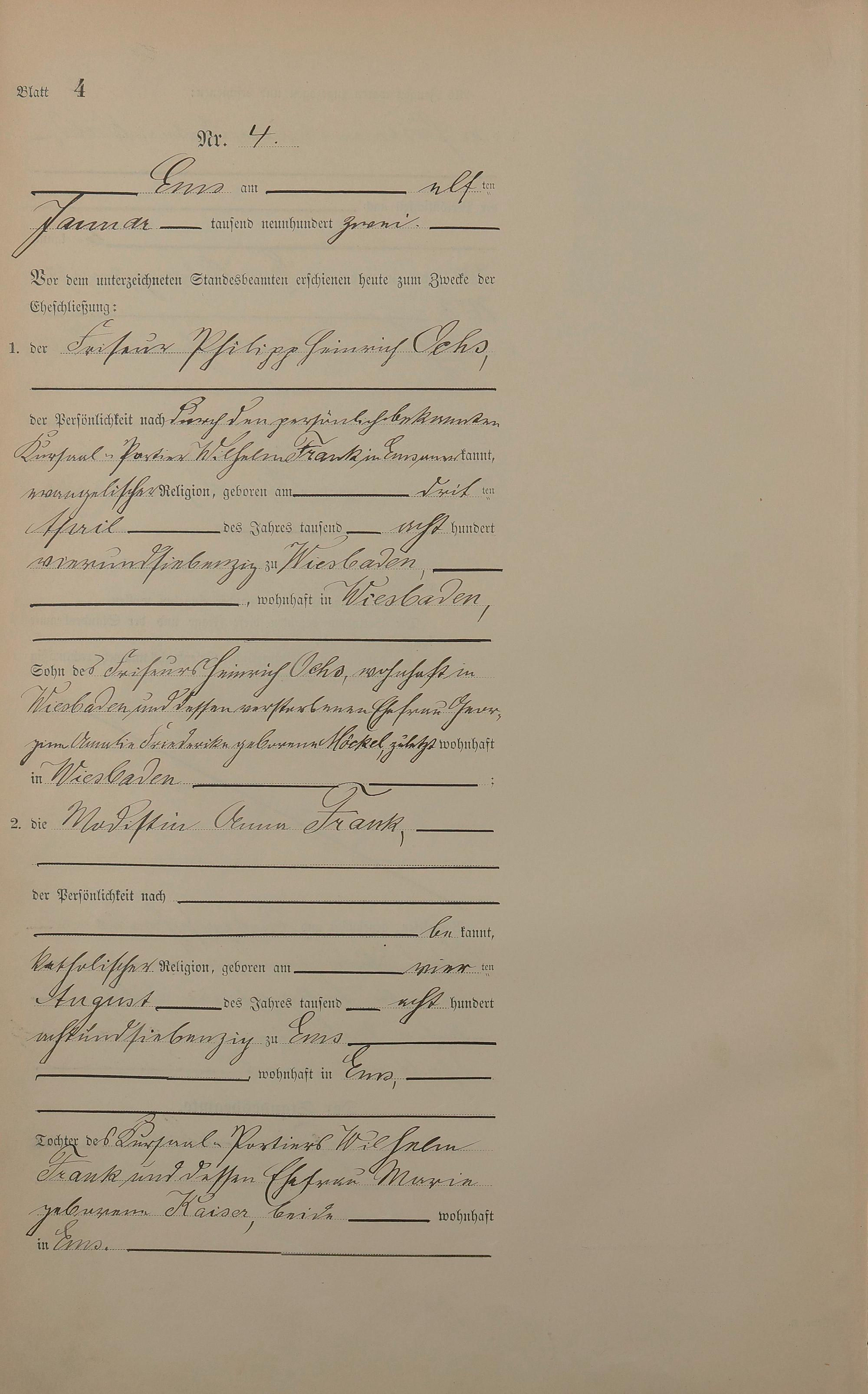 Heiratsregister 1902