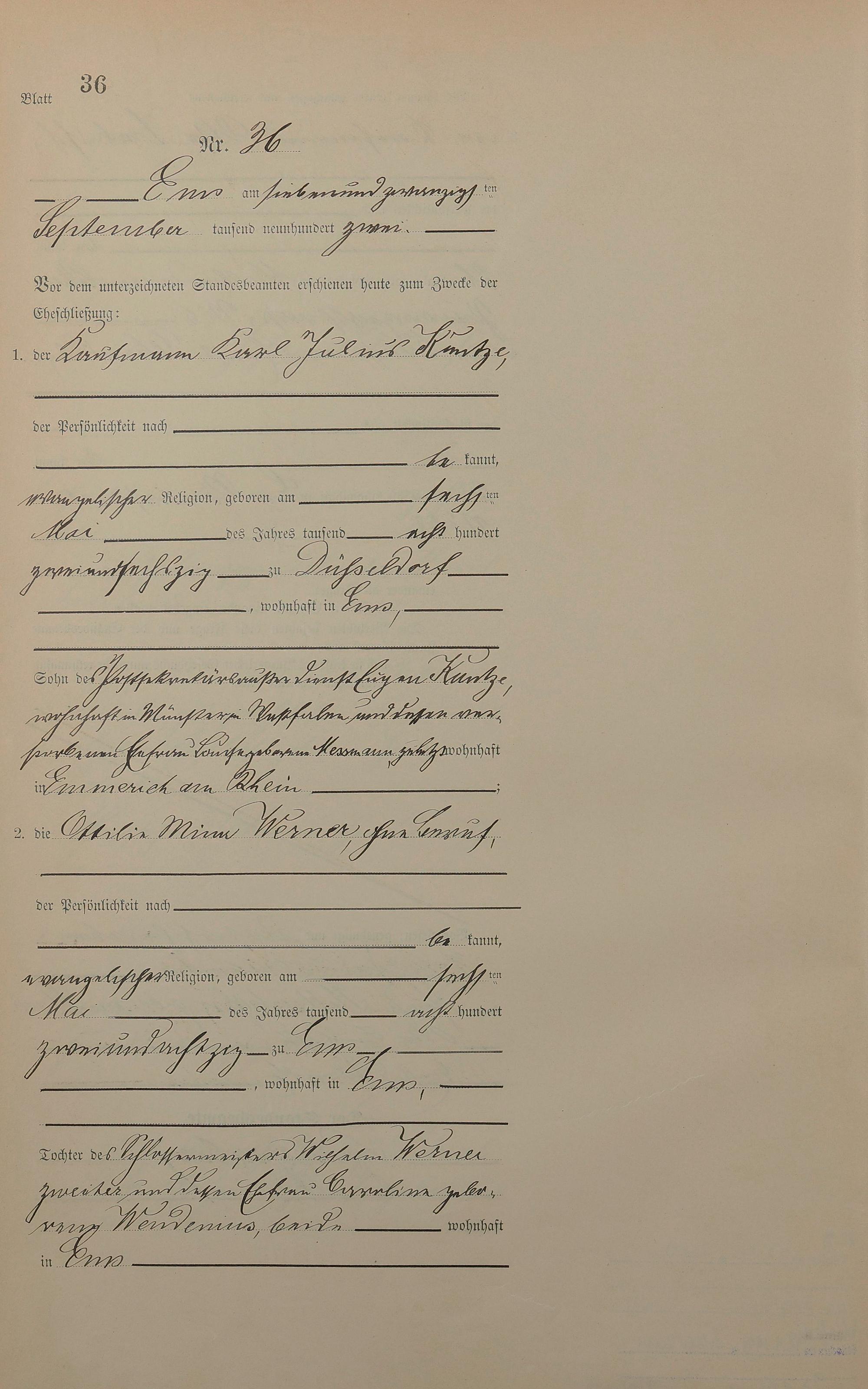 Heiratsregister 1902