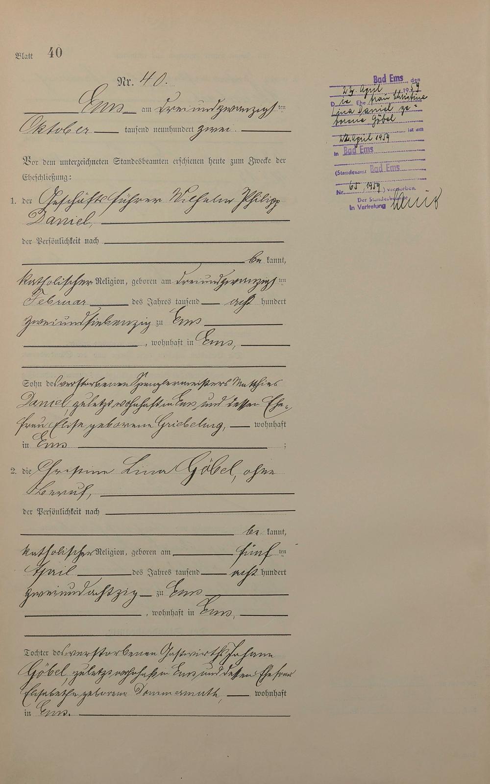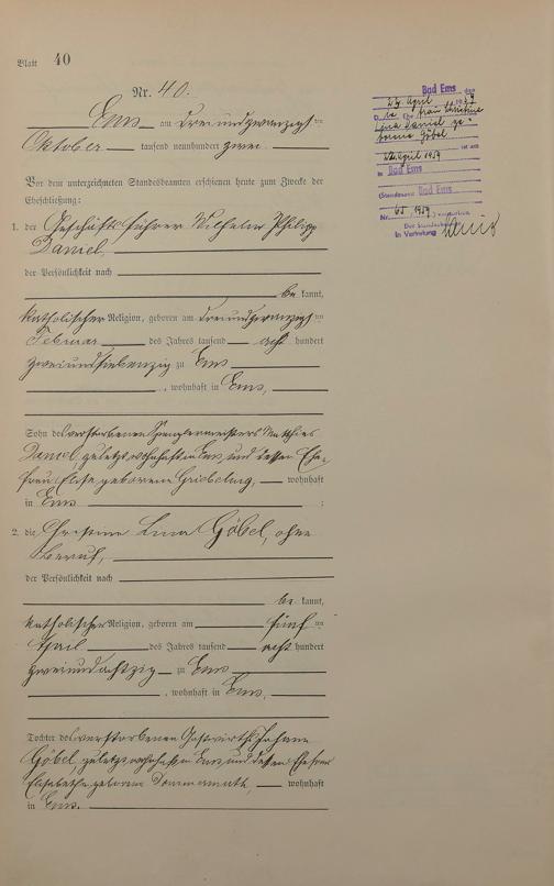 Heiratsregister 1902