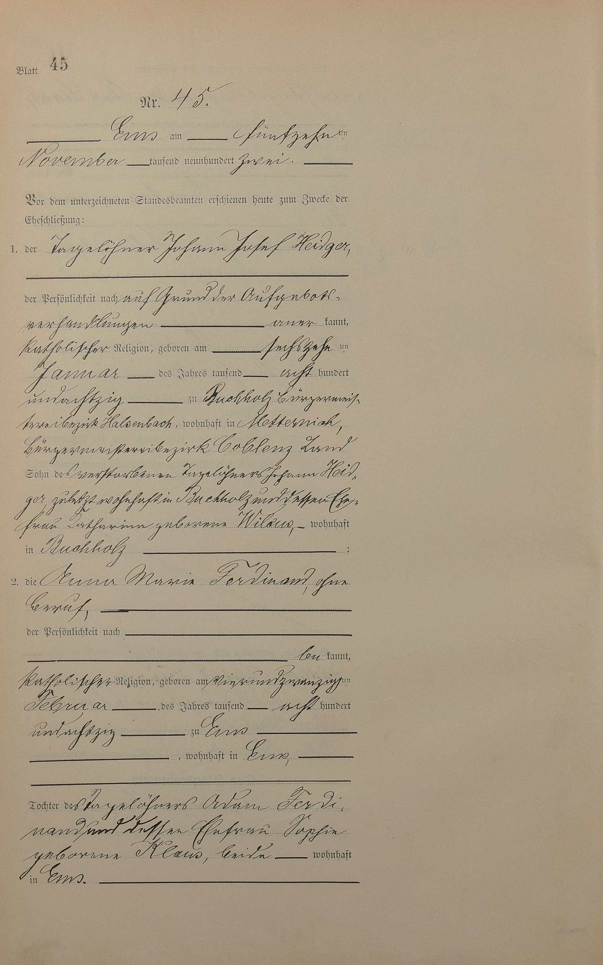 Heiratsregister 1902