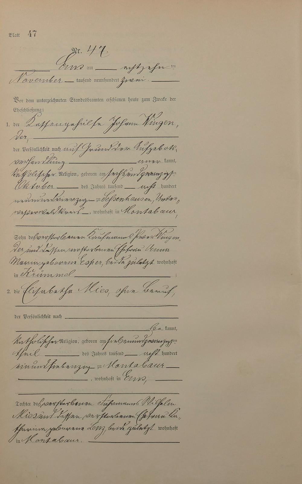 Heiratsregister 1902