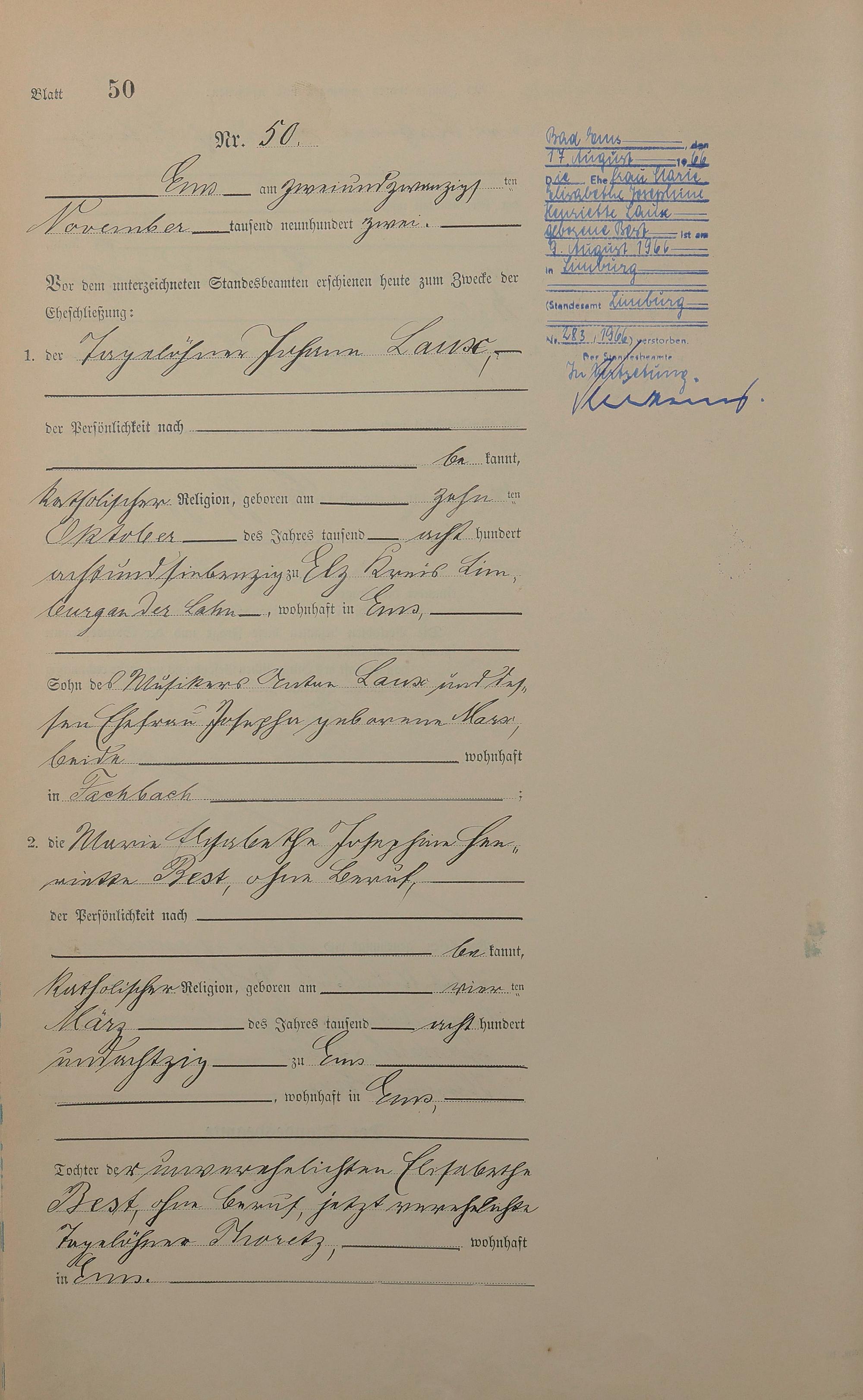 Heiratsregister 1902