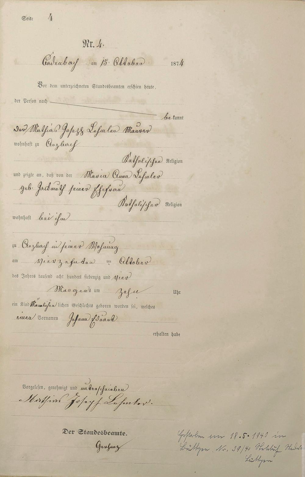 Geburtsregister 1874