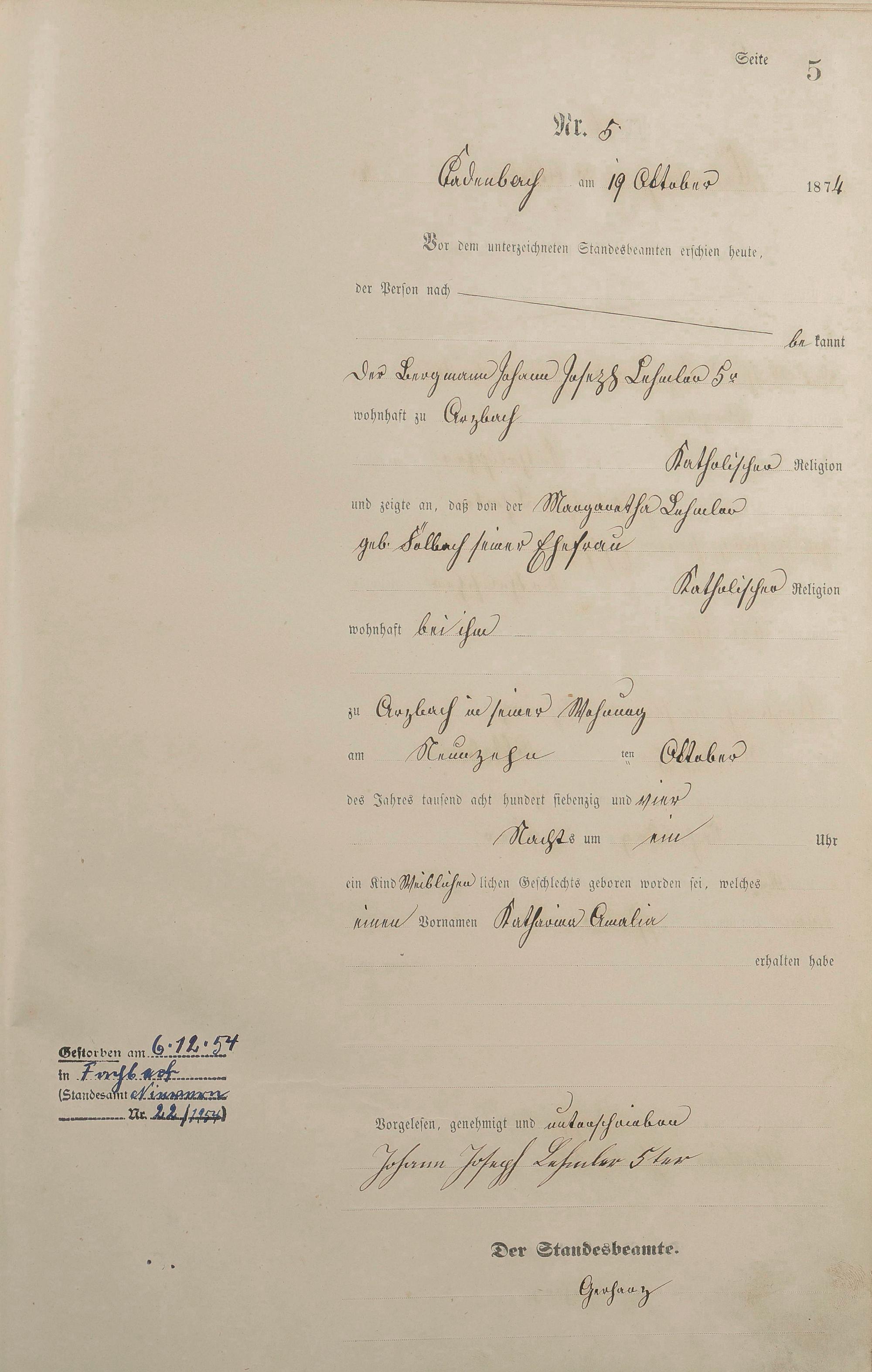 Geburtsregister 1874