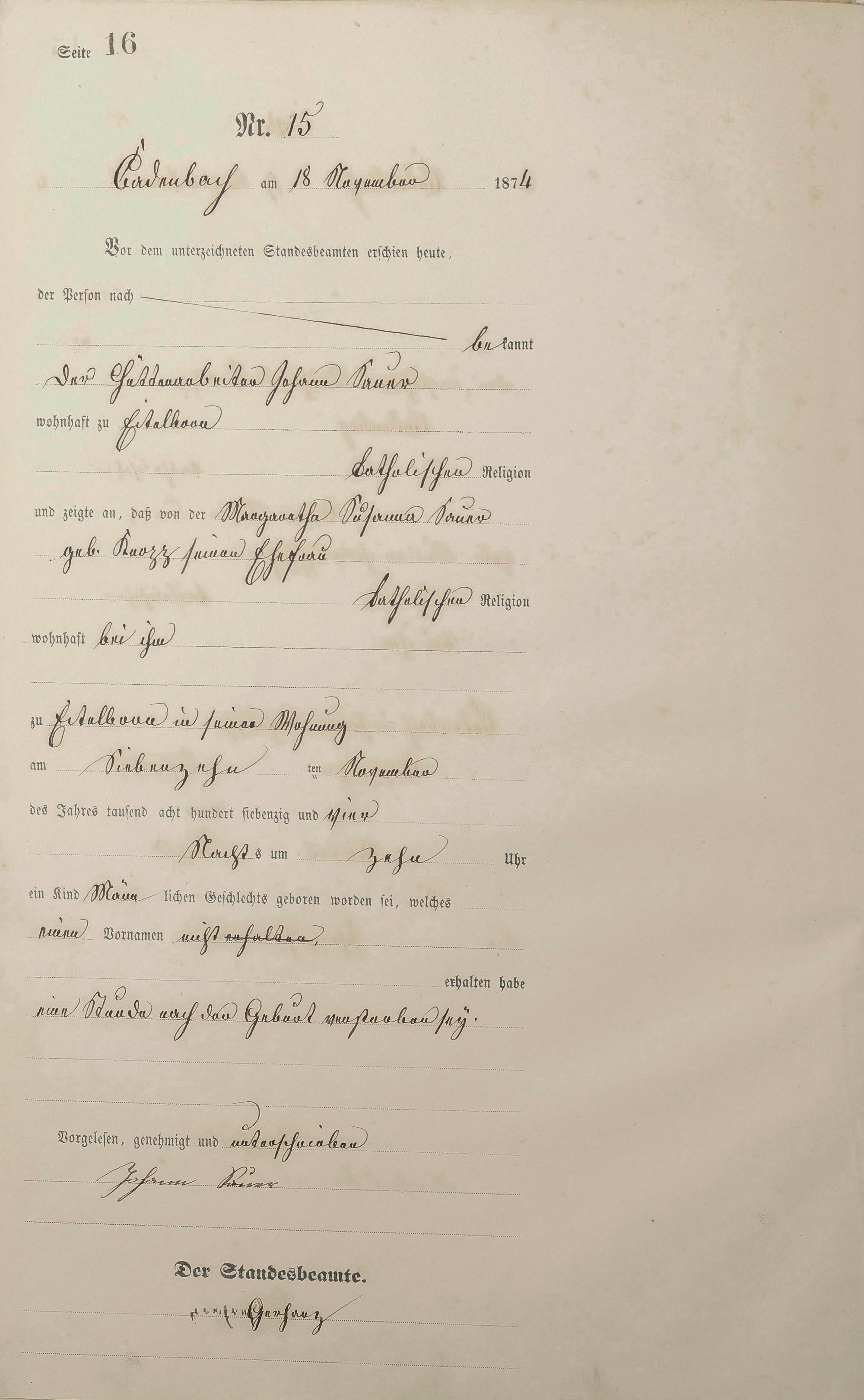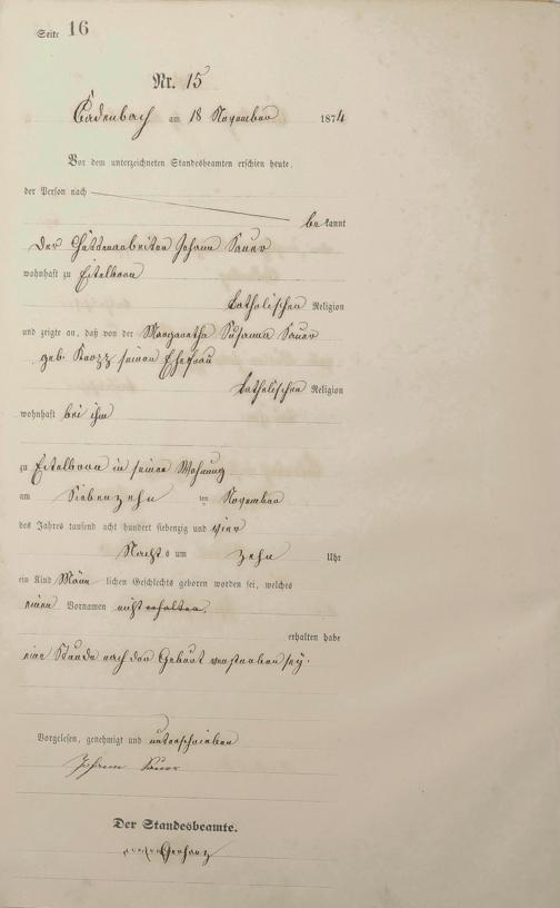 Geburtsregister 1874