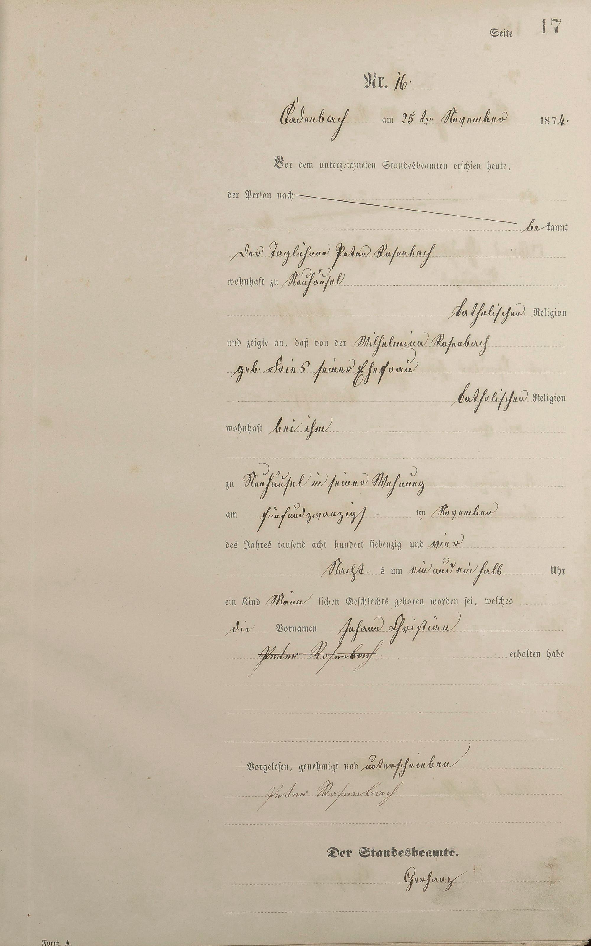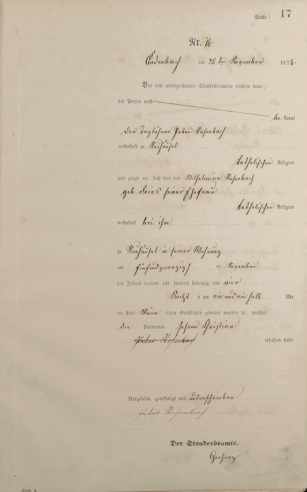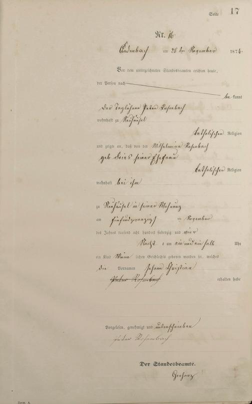 Geburtsregister 1874