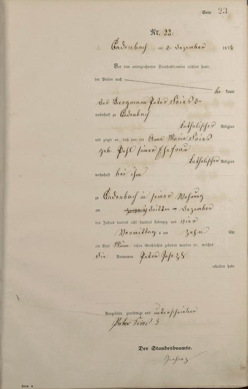 Geburtsregister 1874