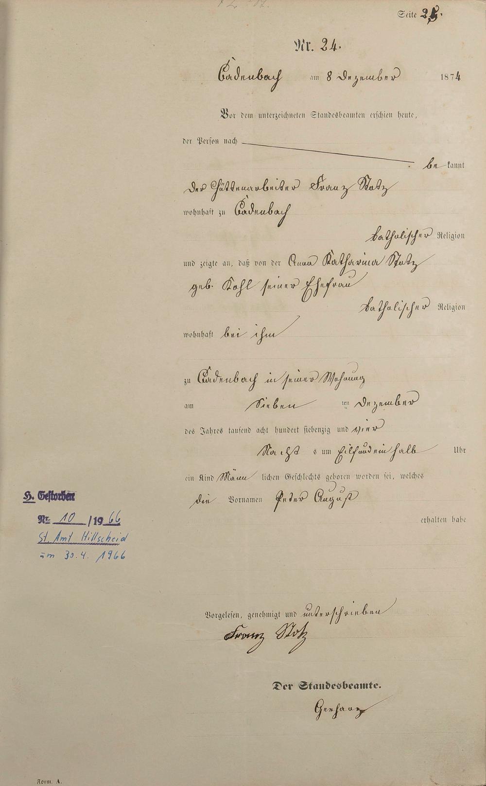 Geburtsregister 1874