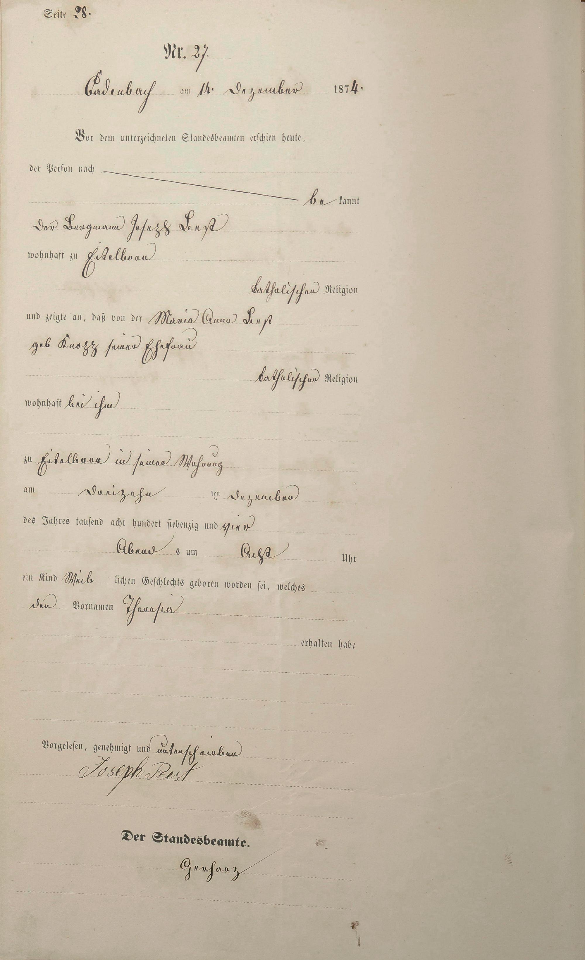 Geburtsregister 1874