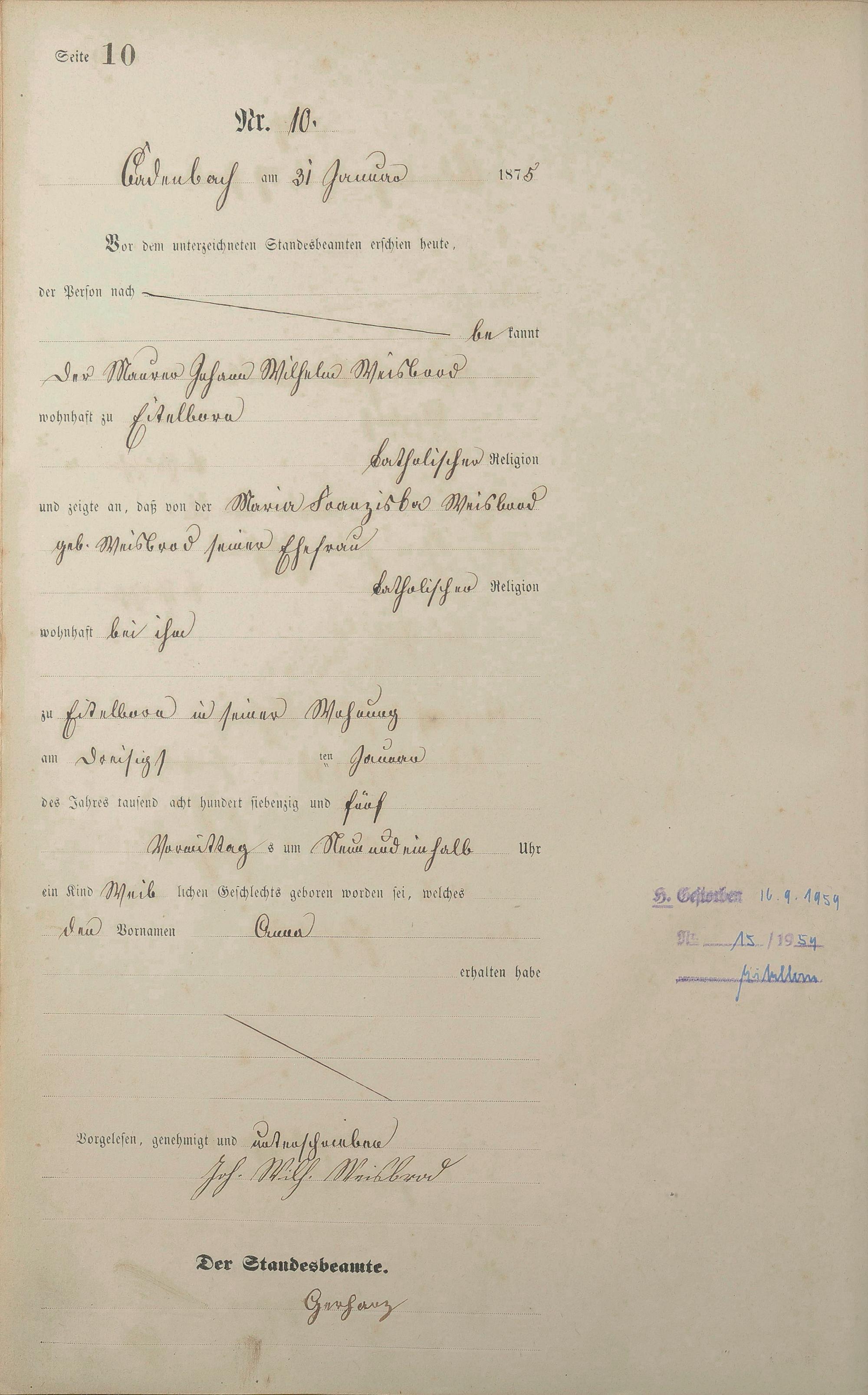 Geburtsregister 1875