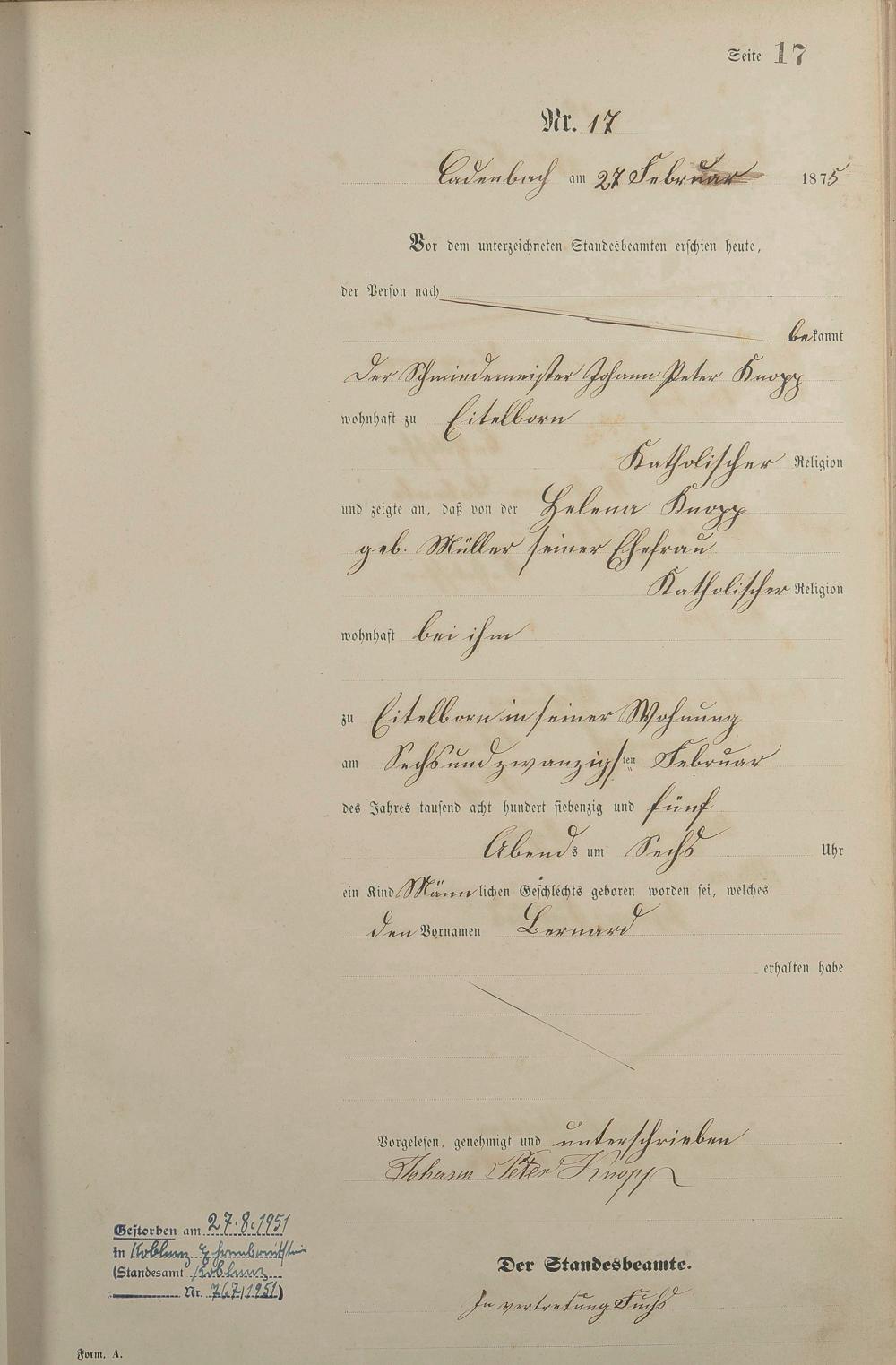Geburtsregister 1875