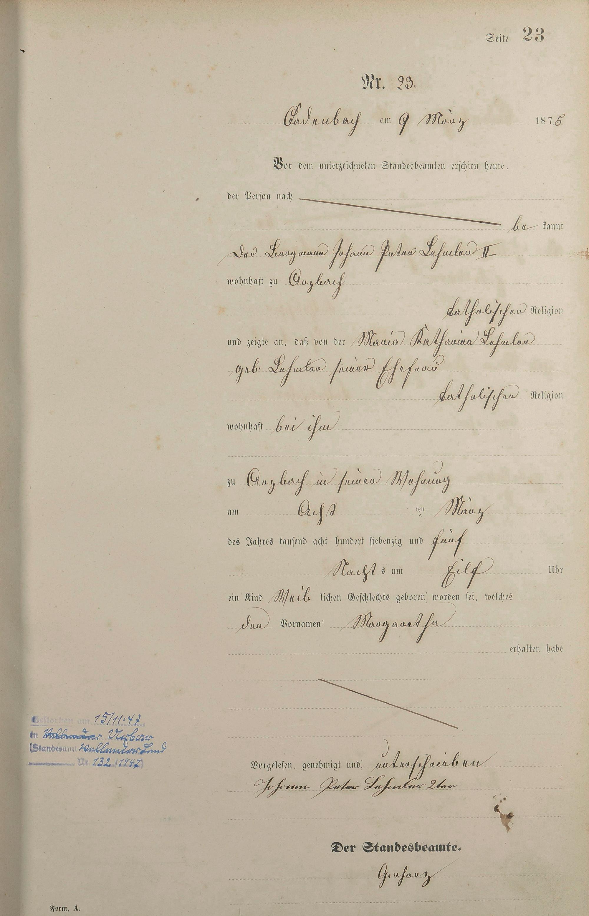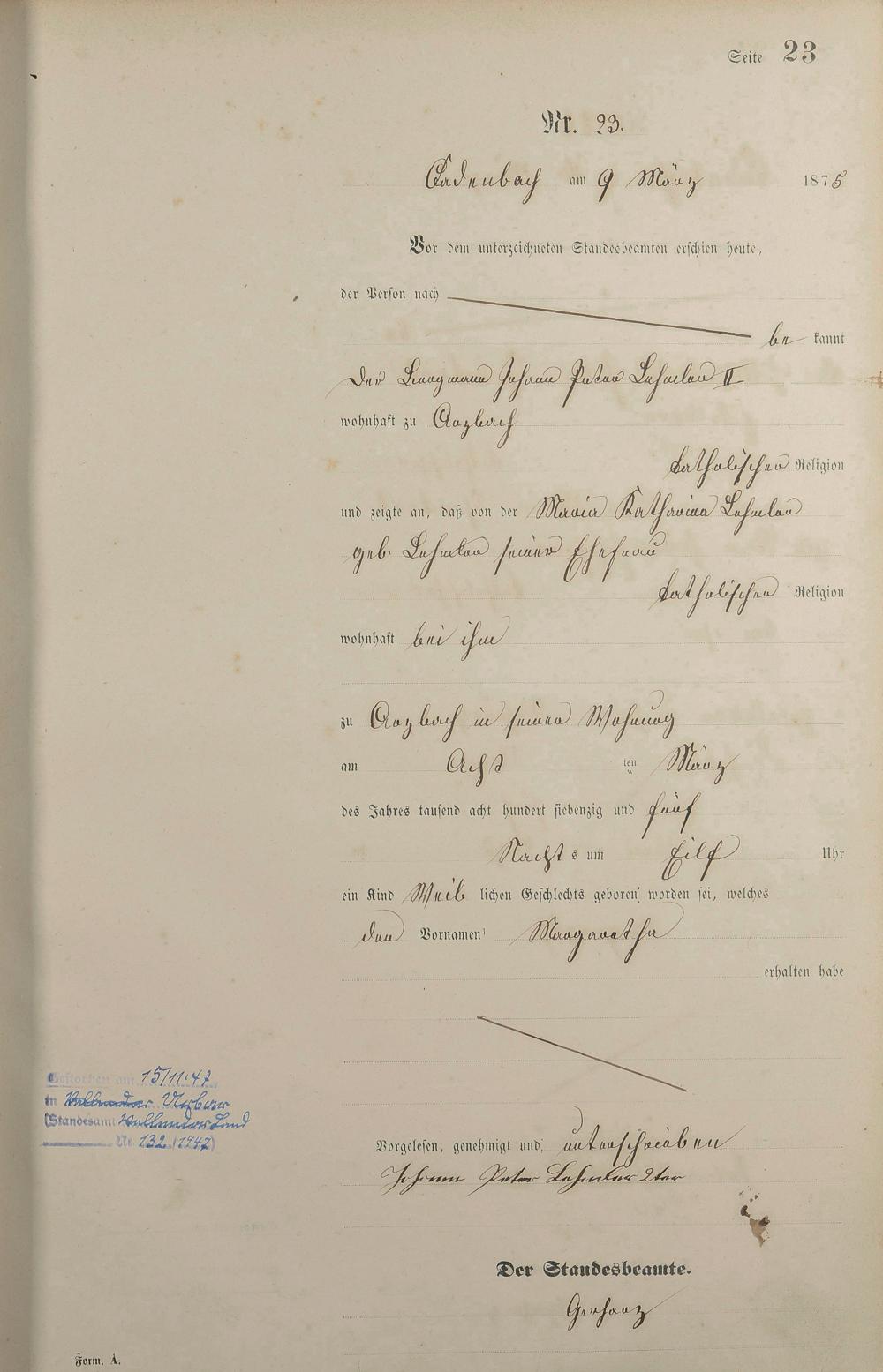Geburtsregister 1875