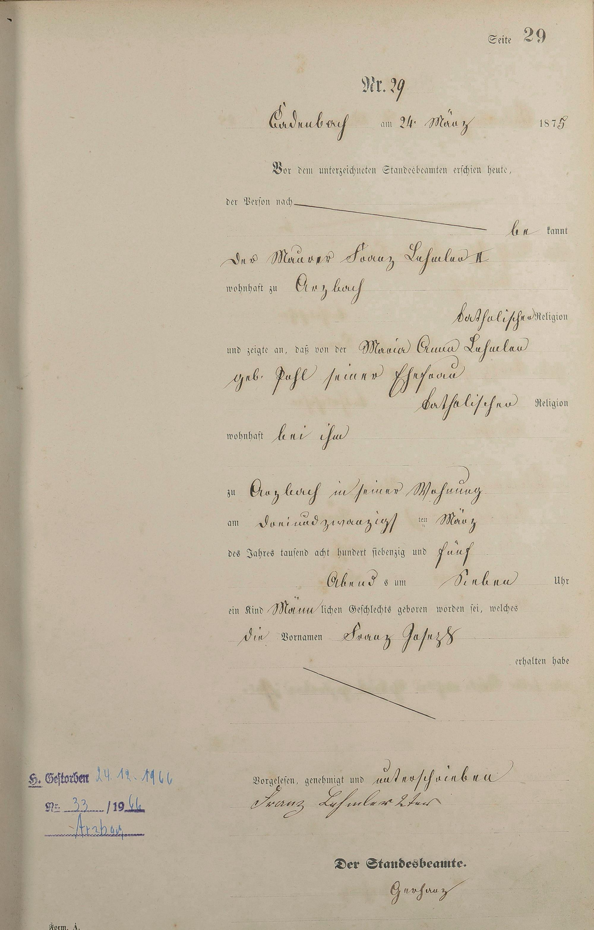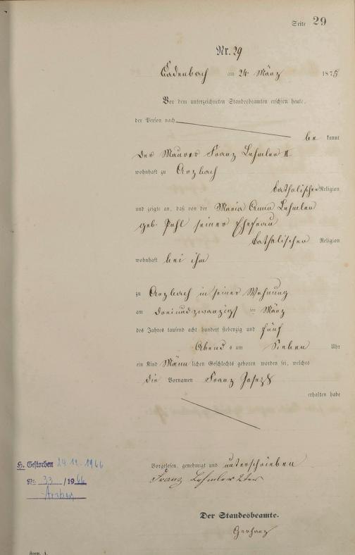 Geburtsregister 1875