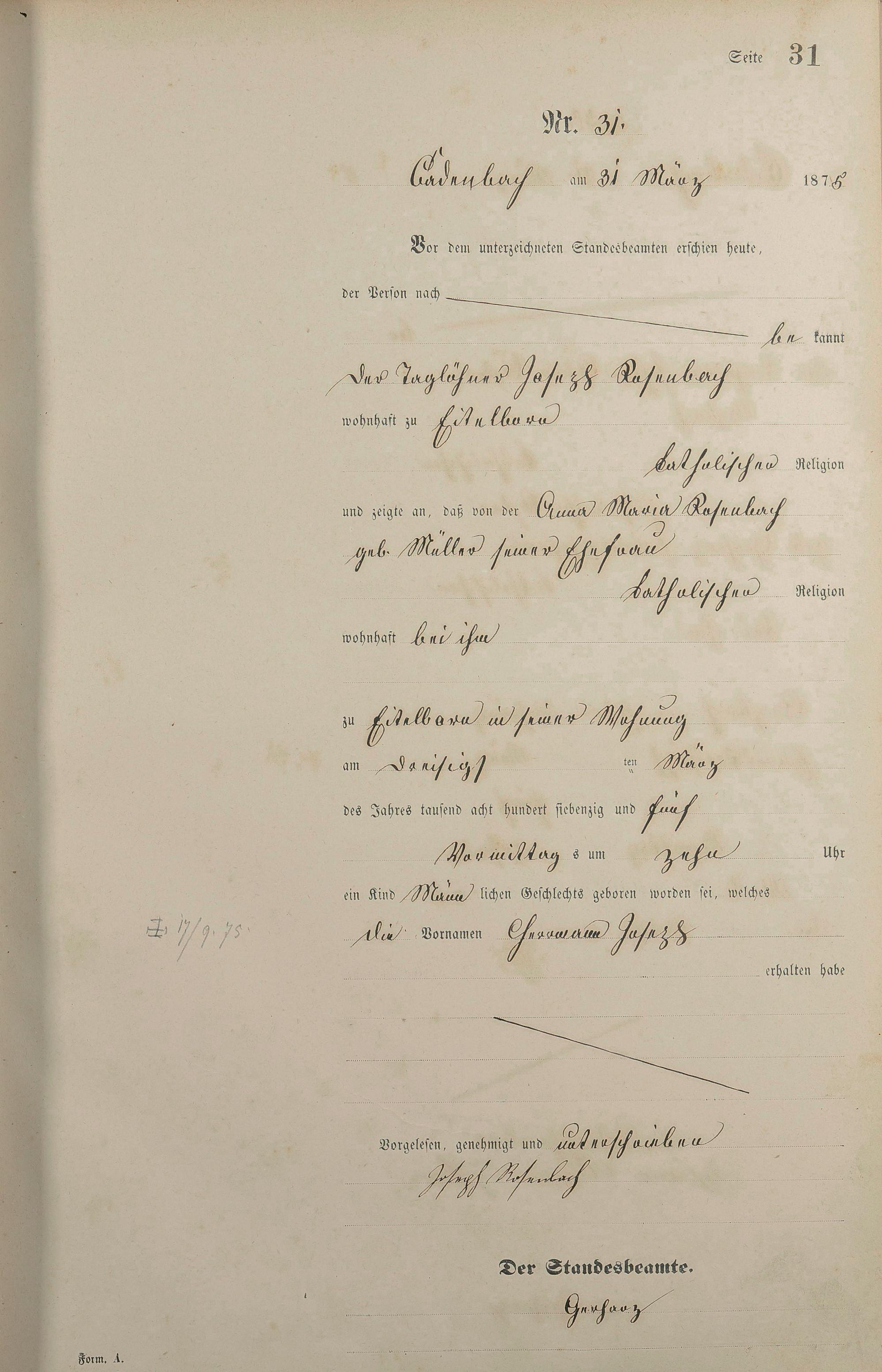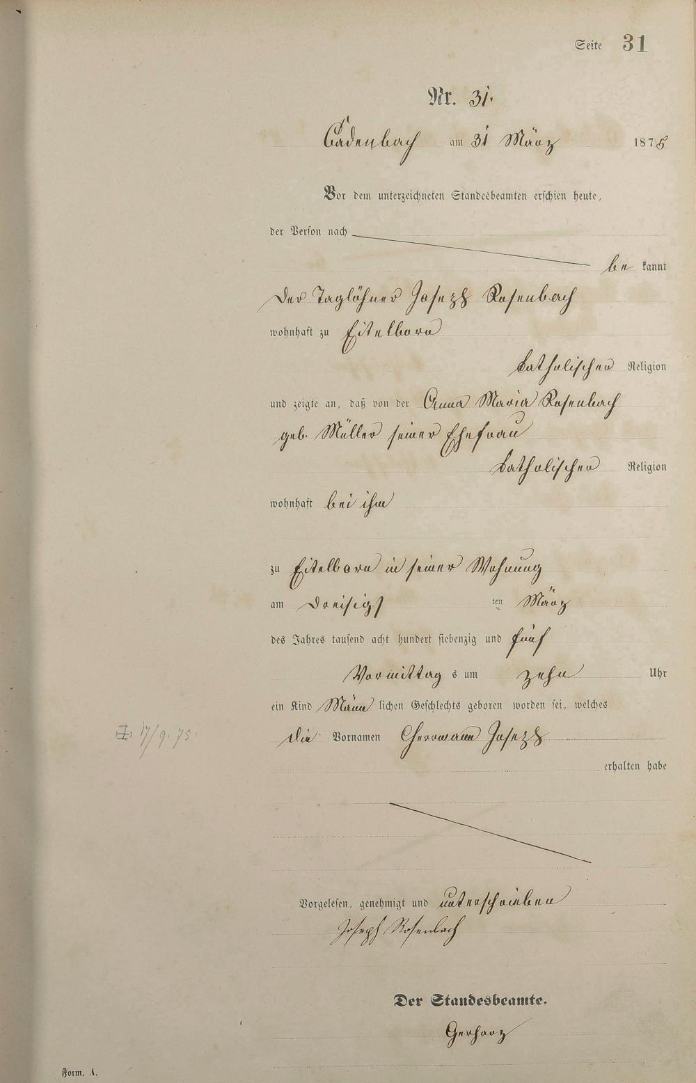 Geburtsregister 1875