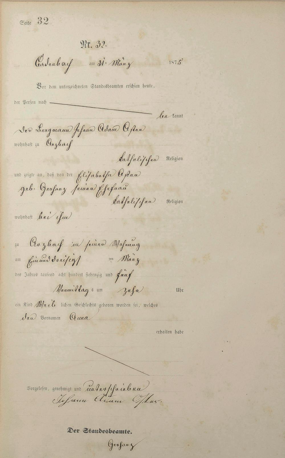 Geburtsregister 1875