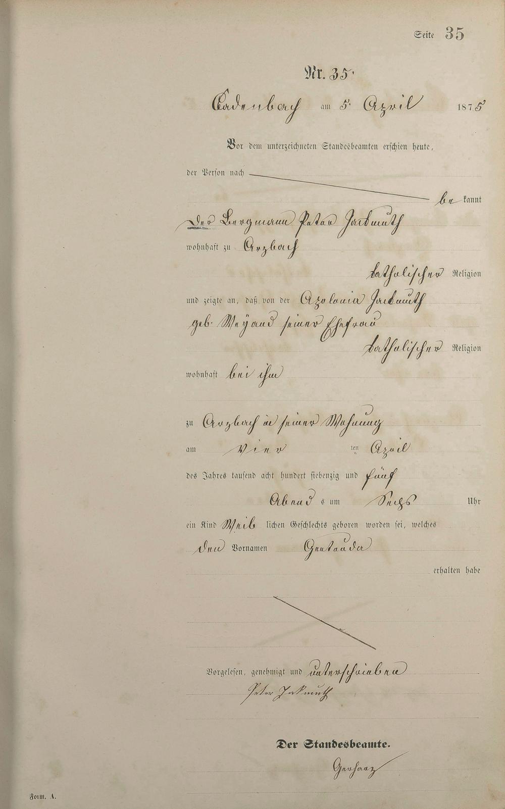 Geburtsregister 1875