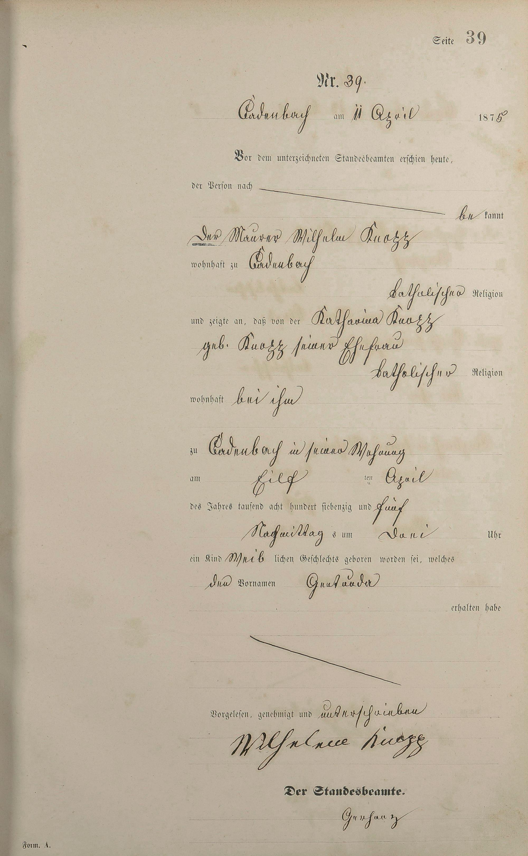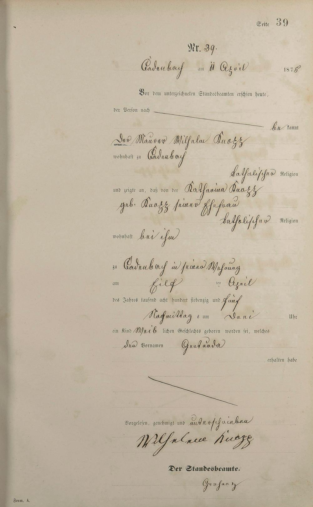 Geburtsregister 1875