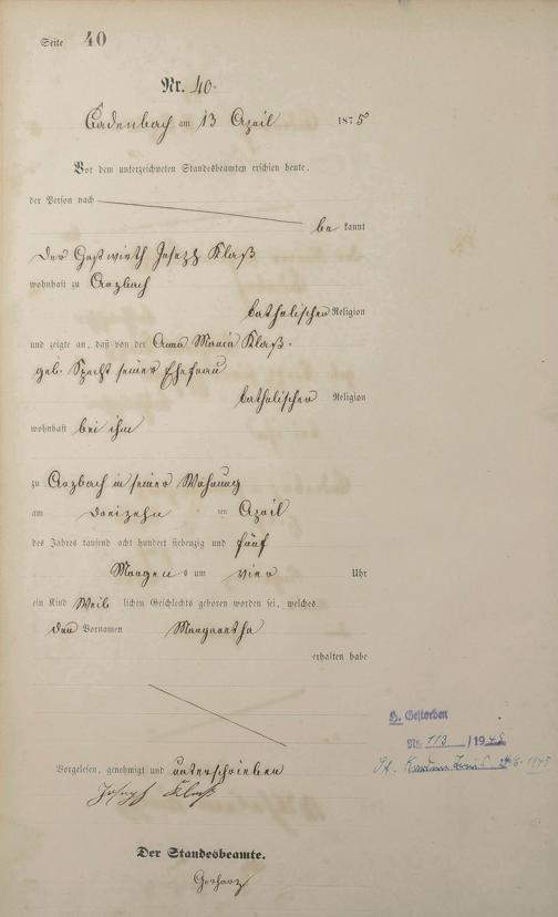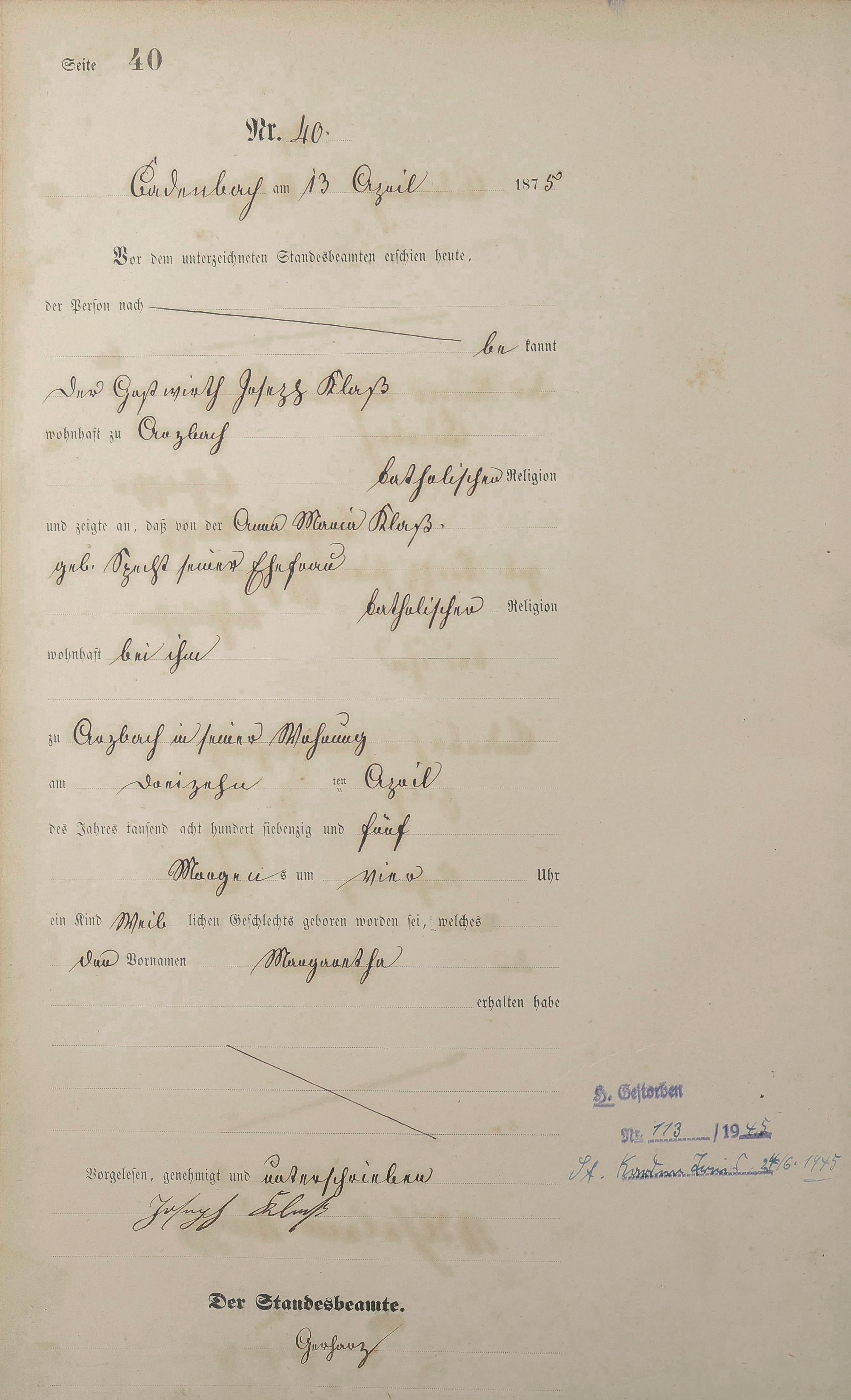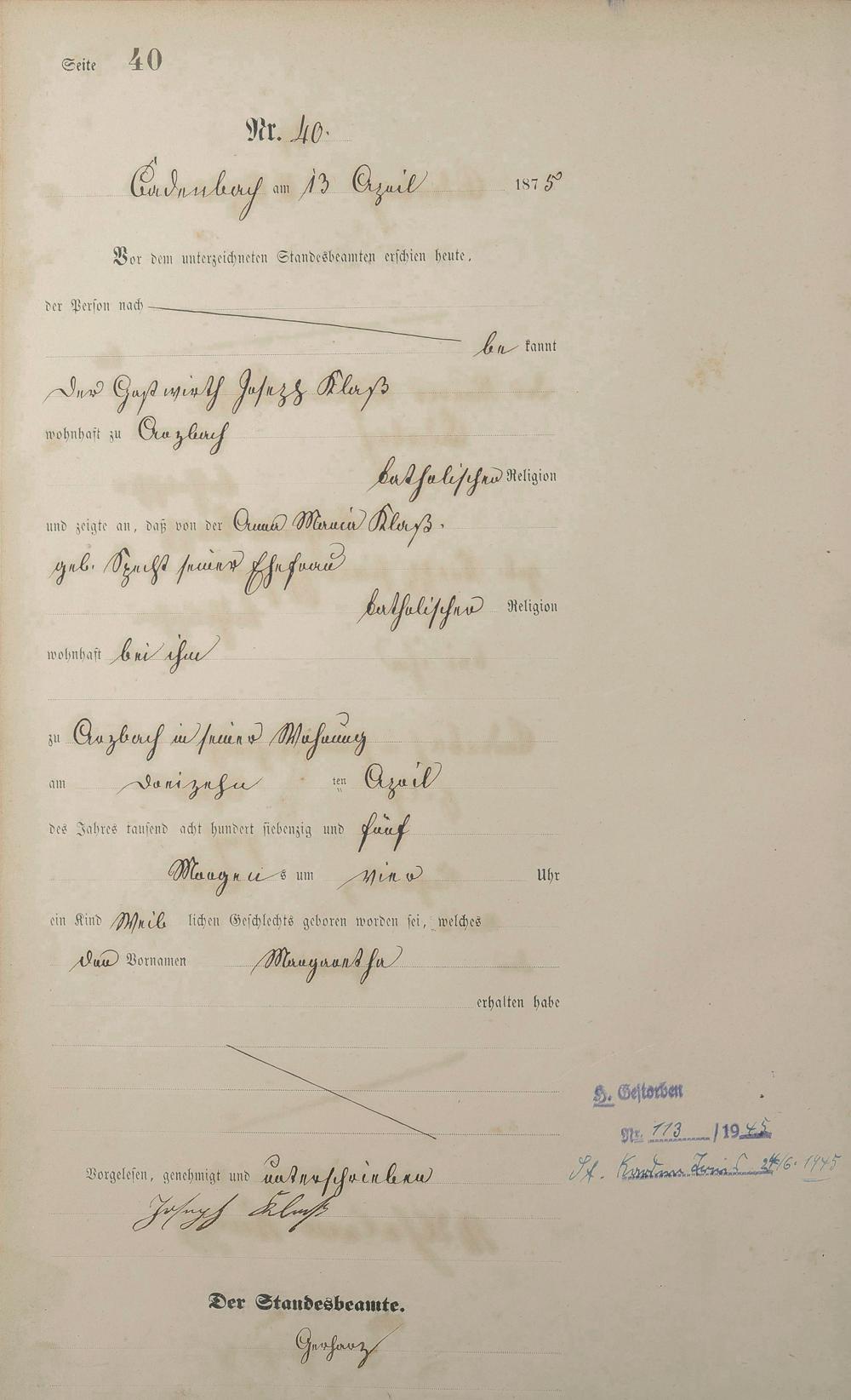 Geburtsregister 1875
