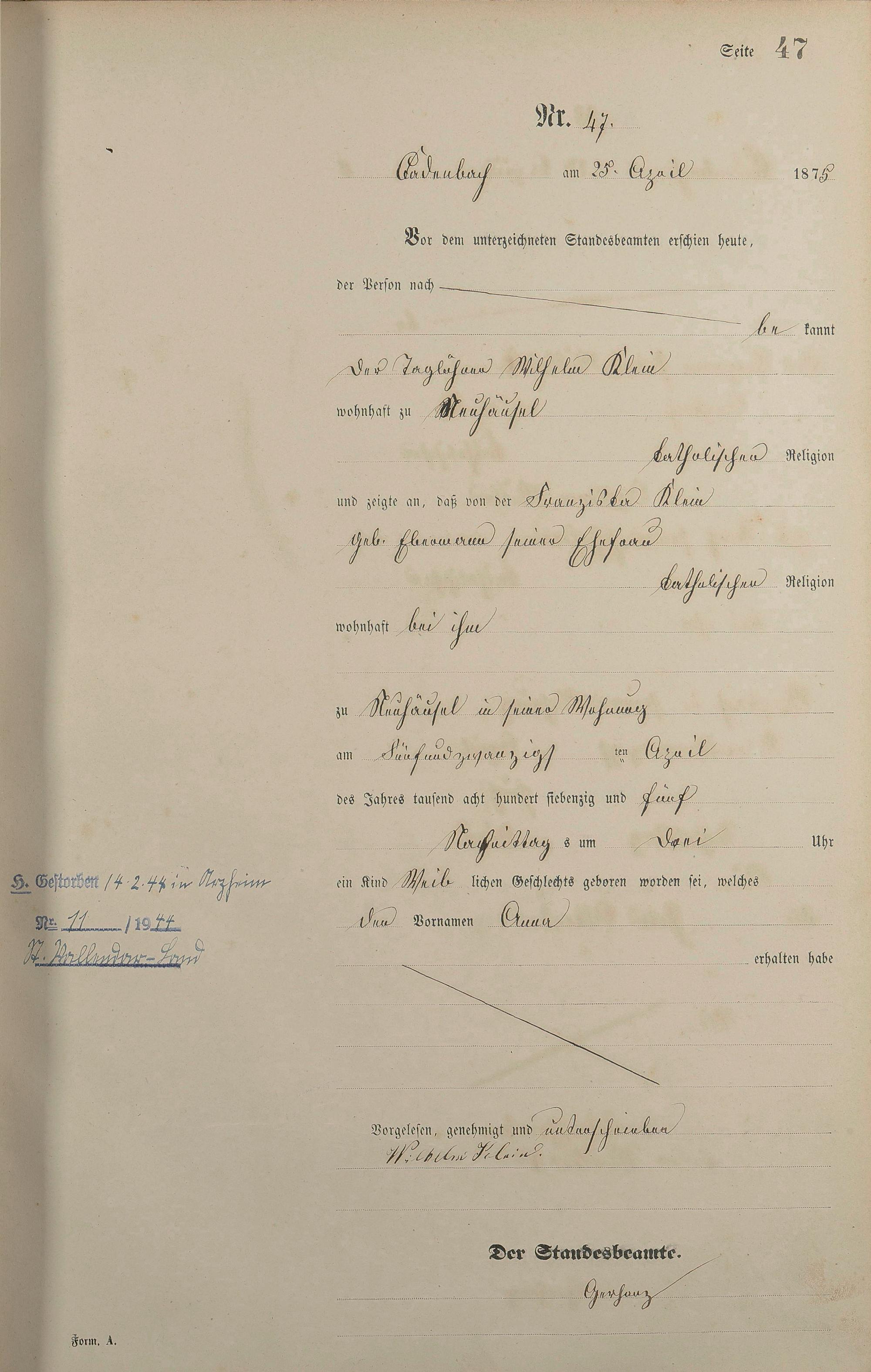 Geburtsregister 1875