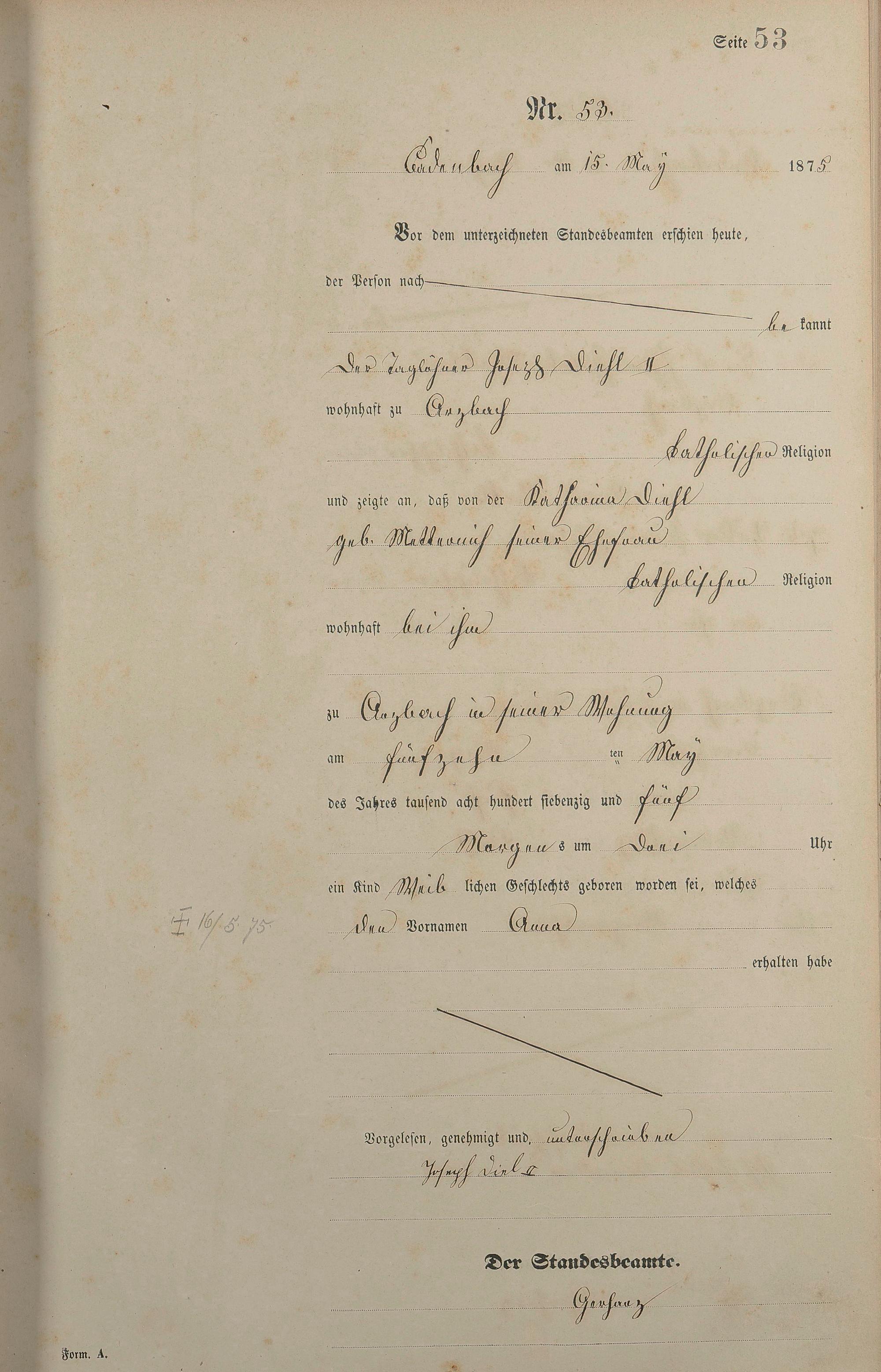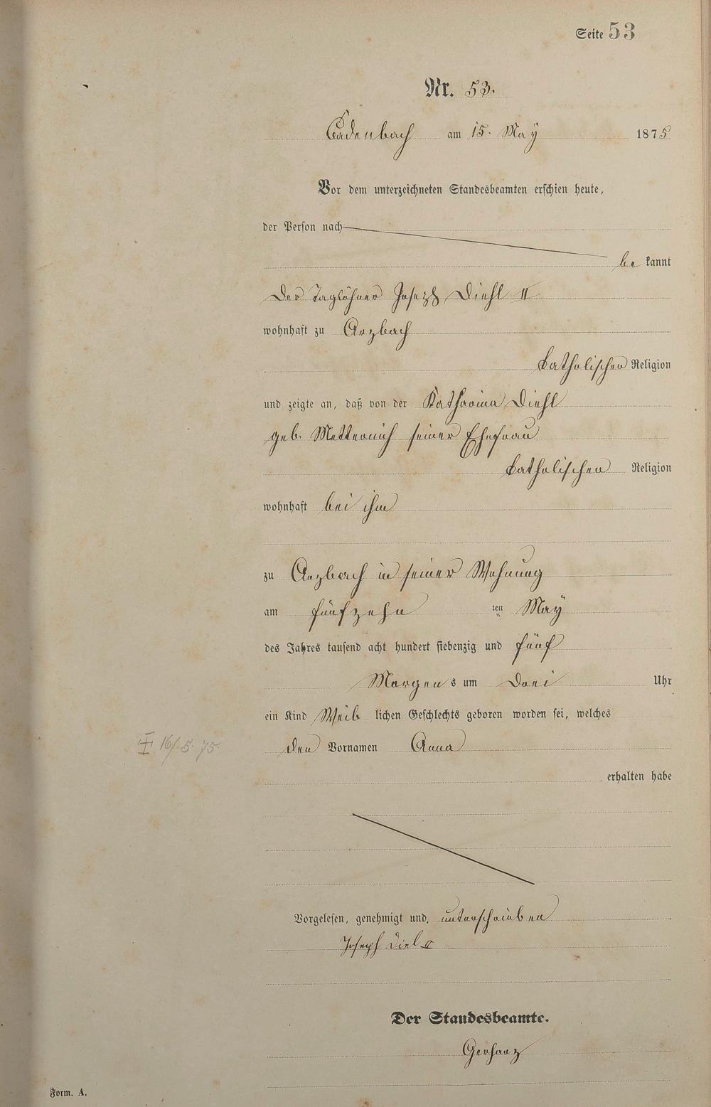 Geburtsregister 1875