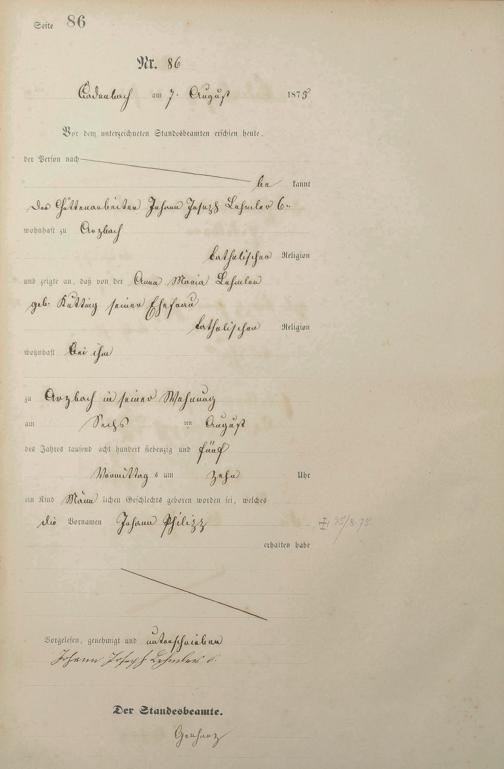 Geburtsregister 1875
