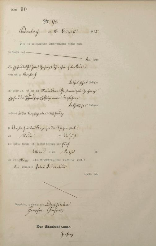 Geburtsregister 1875