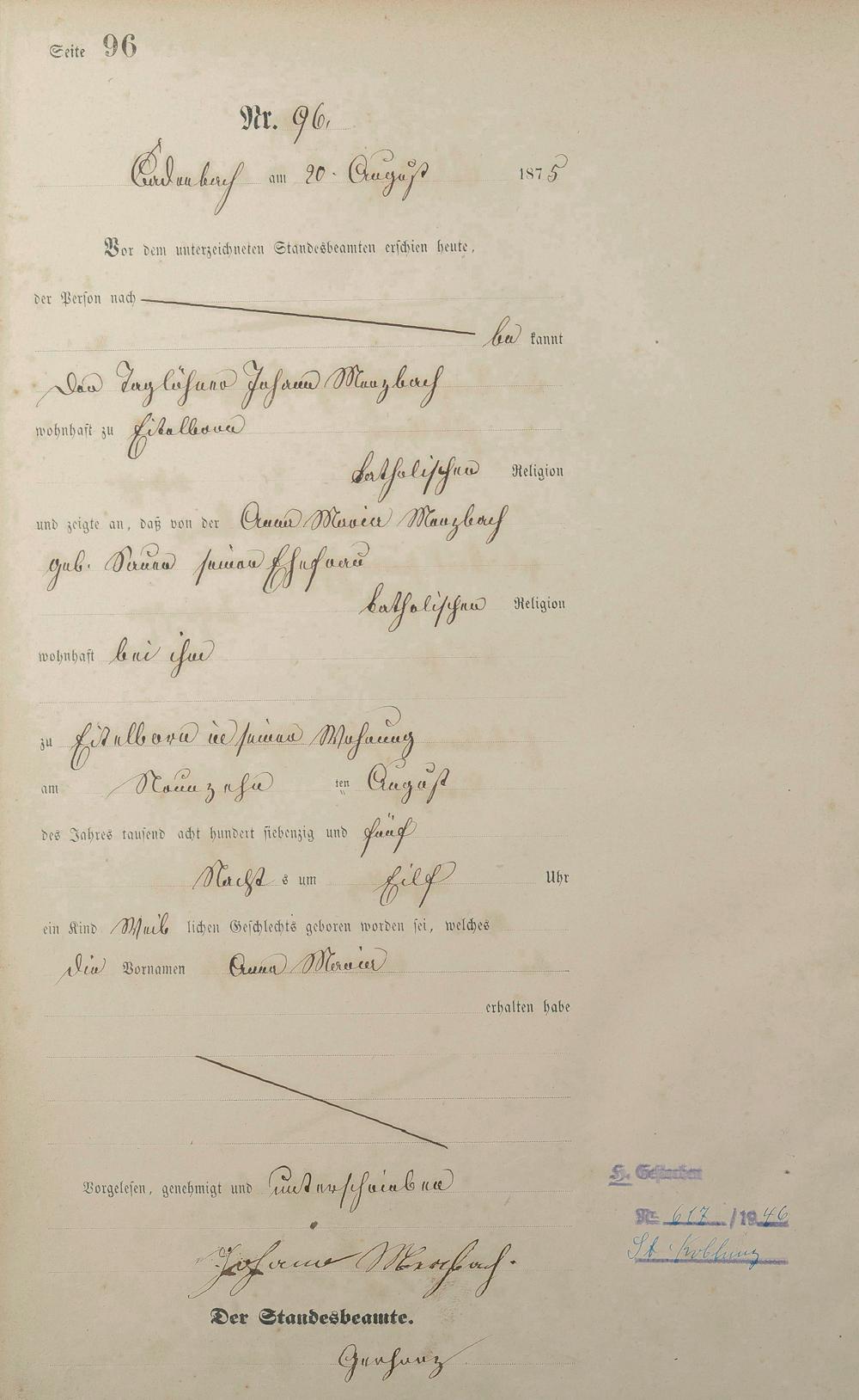 Geburtsregister 1875