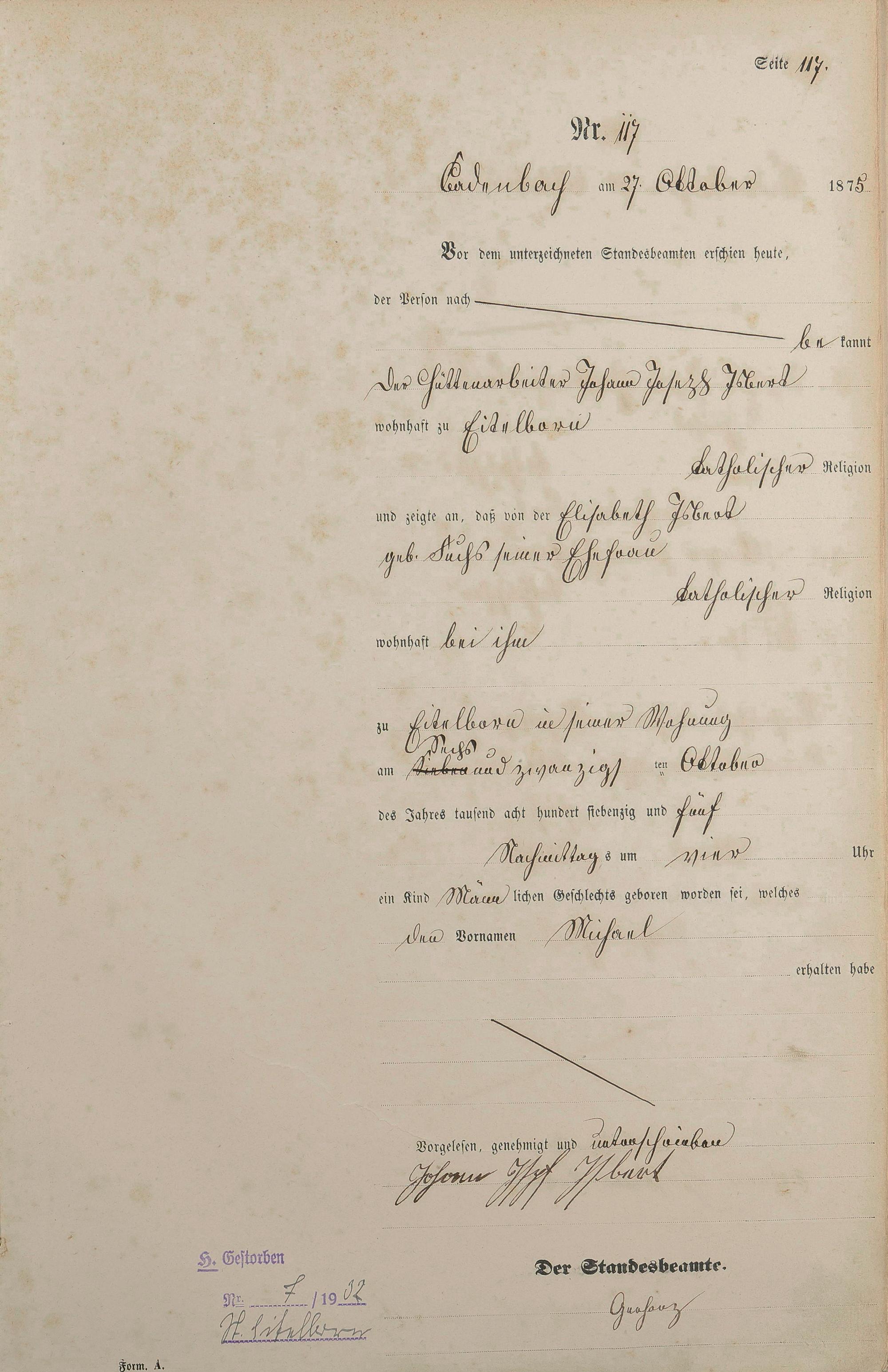 Geburtsregister 1875