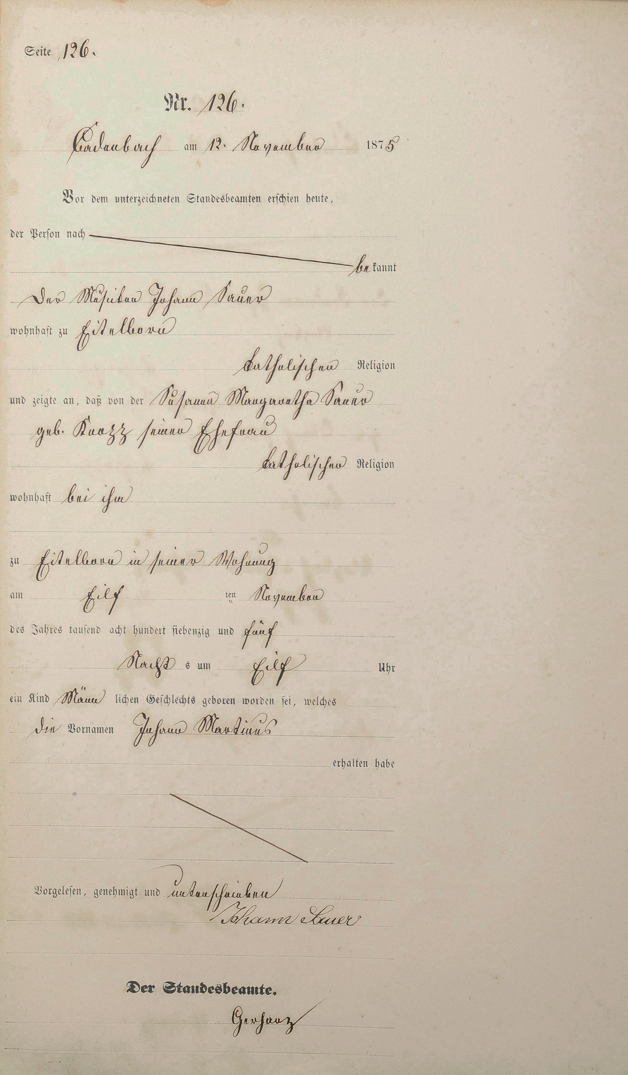Geburtsregister 1875