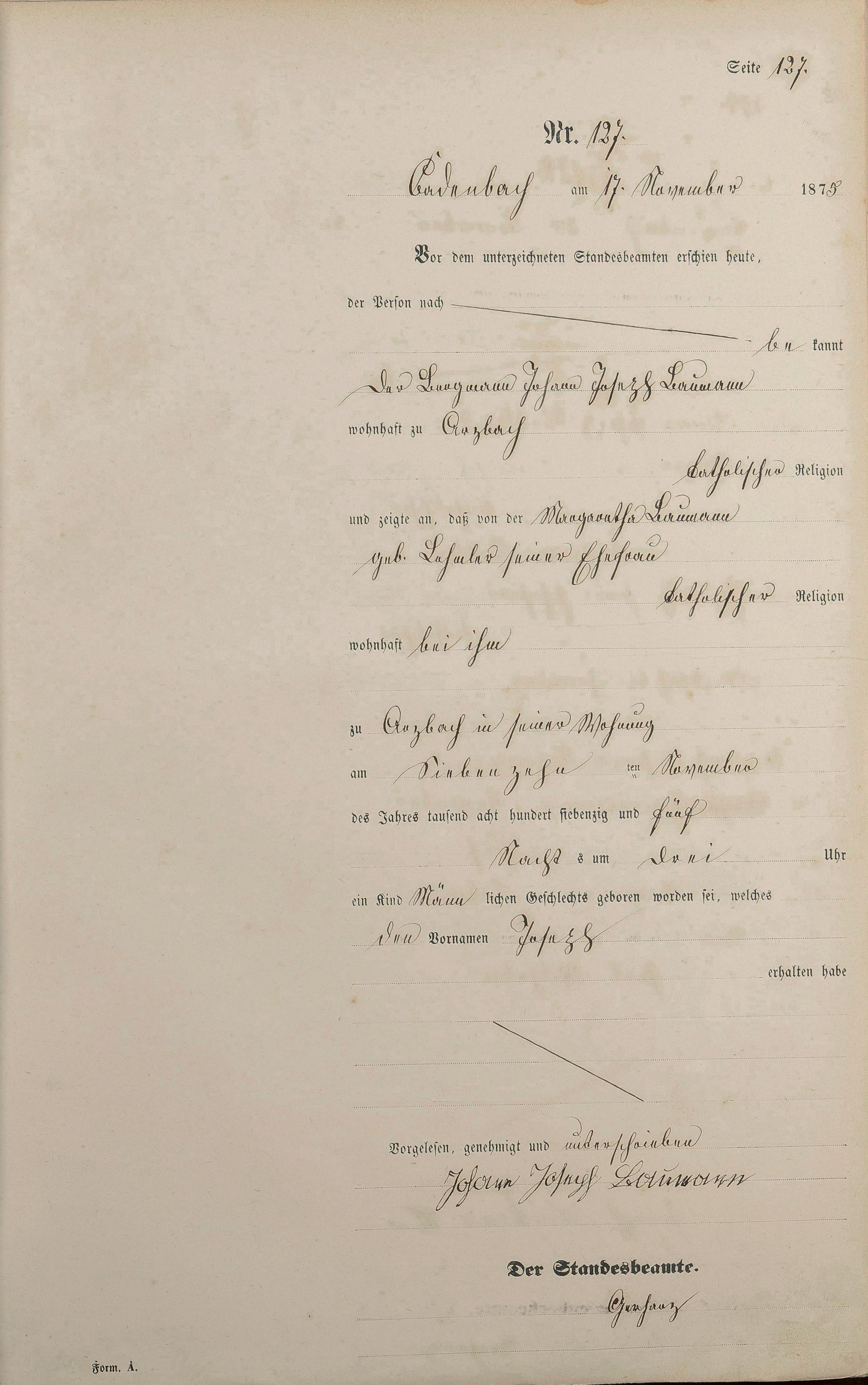 Geburtsregister 1875