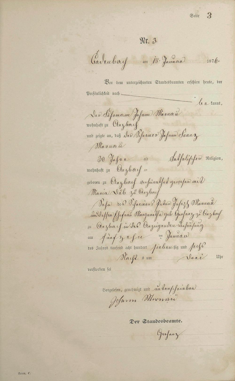 Sterberegister 1876