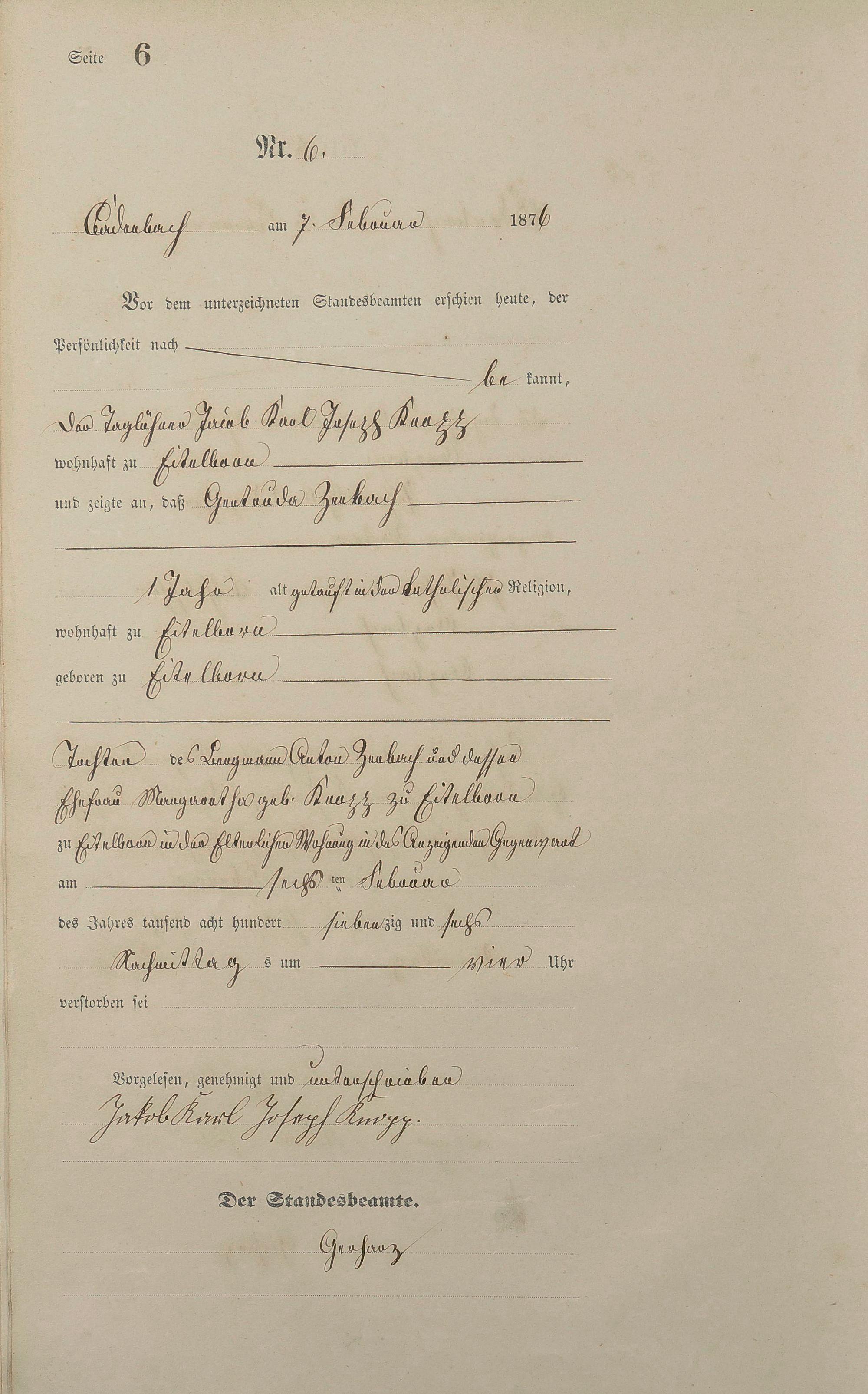 Sterberegister 1876