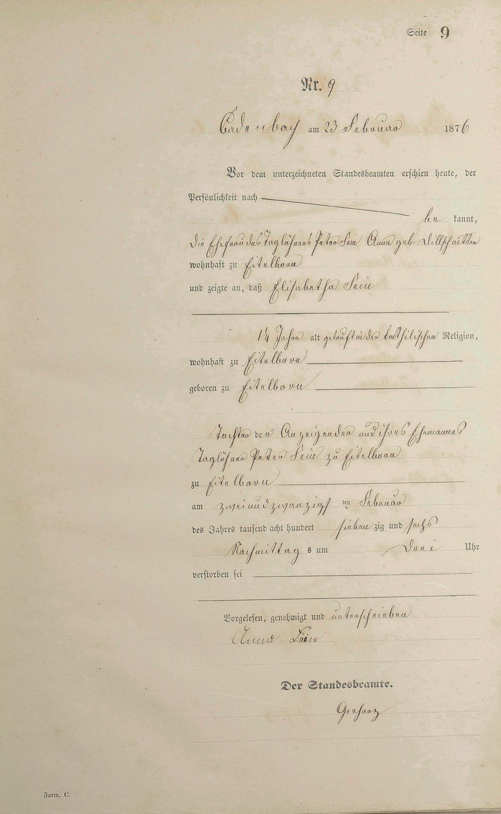 Sterberegister 1876
