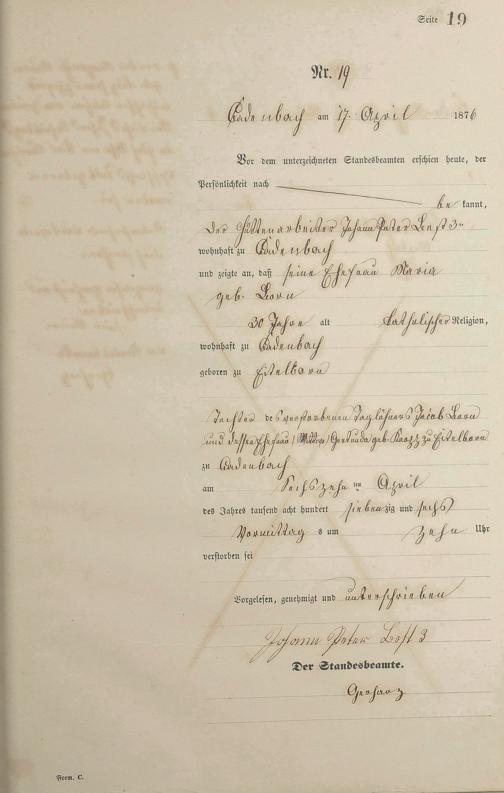 Sterberegister 1876