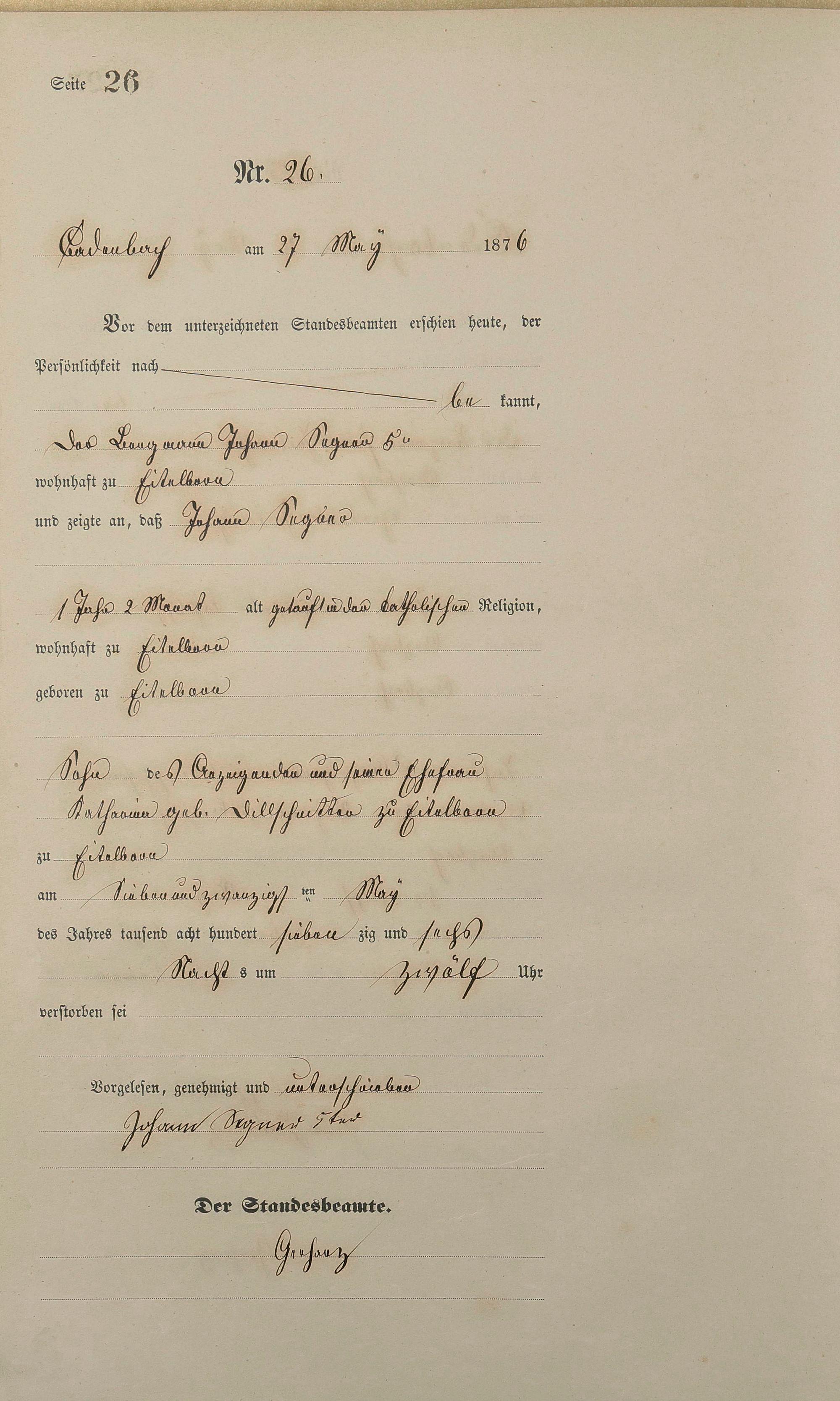 Sterberegister 1876