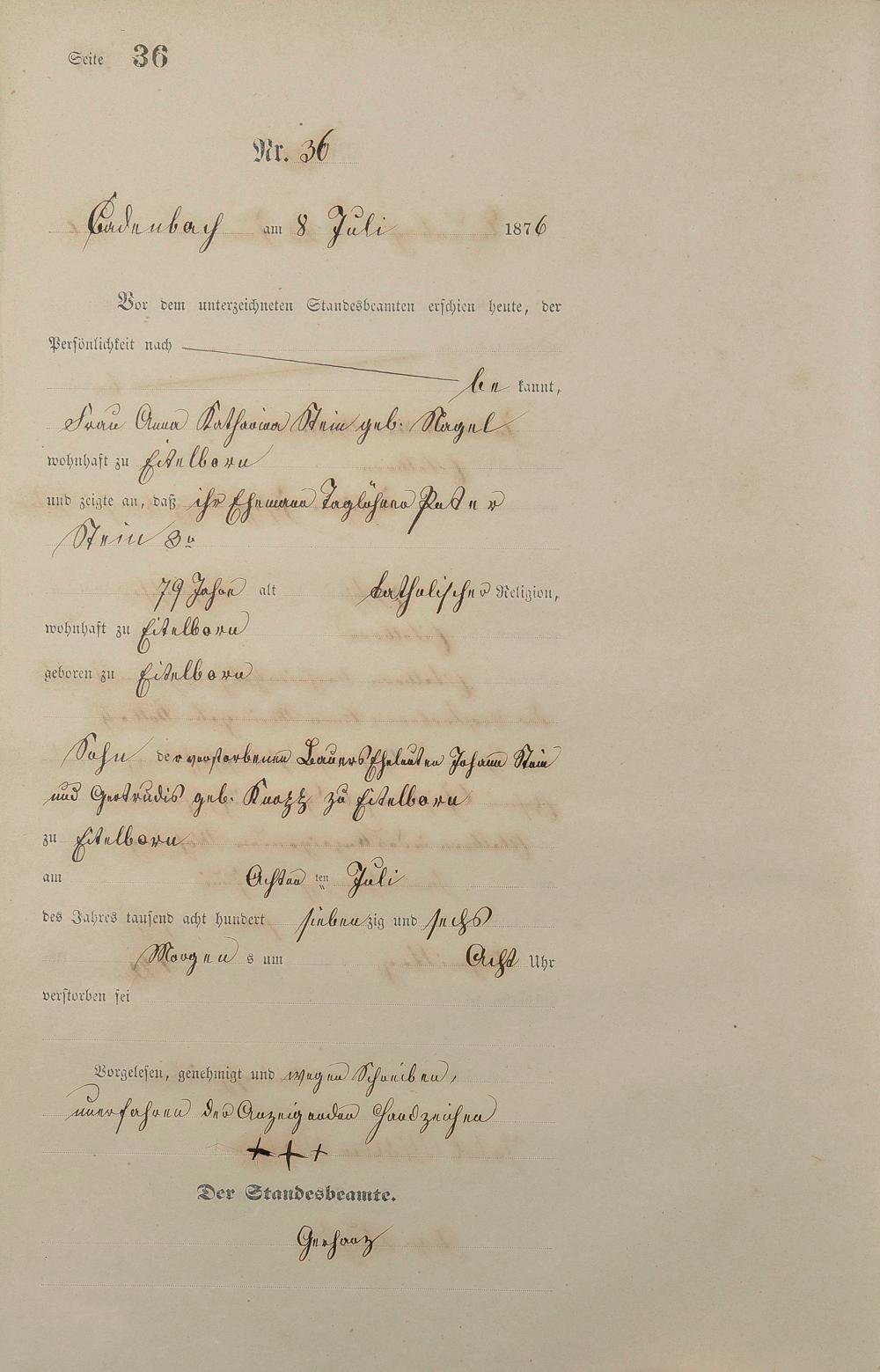 Sterberegister 1876