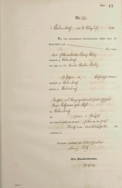 Sterberegister 1876