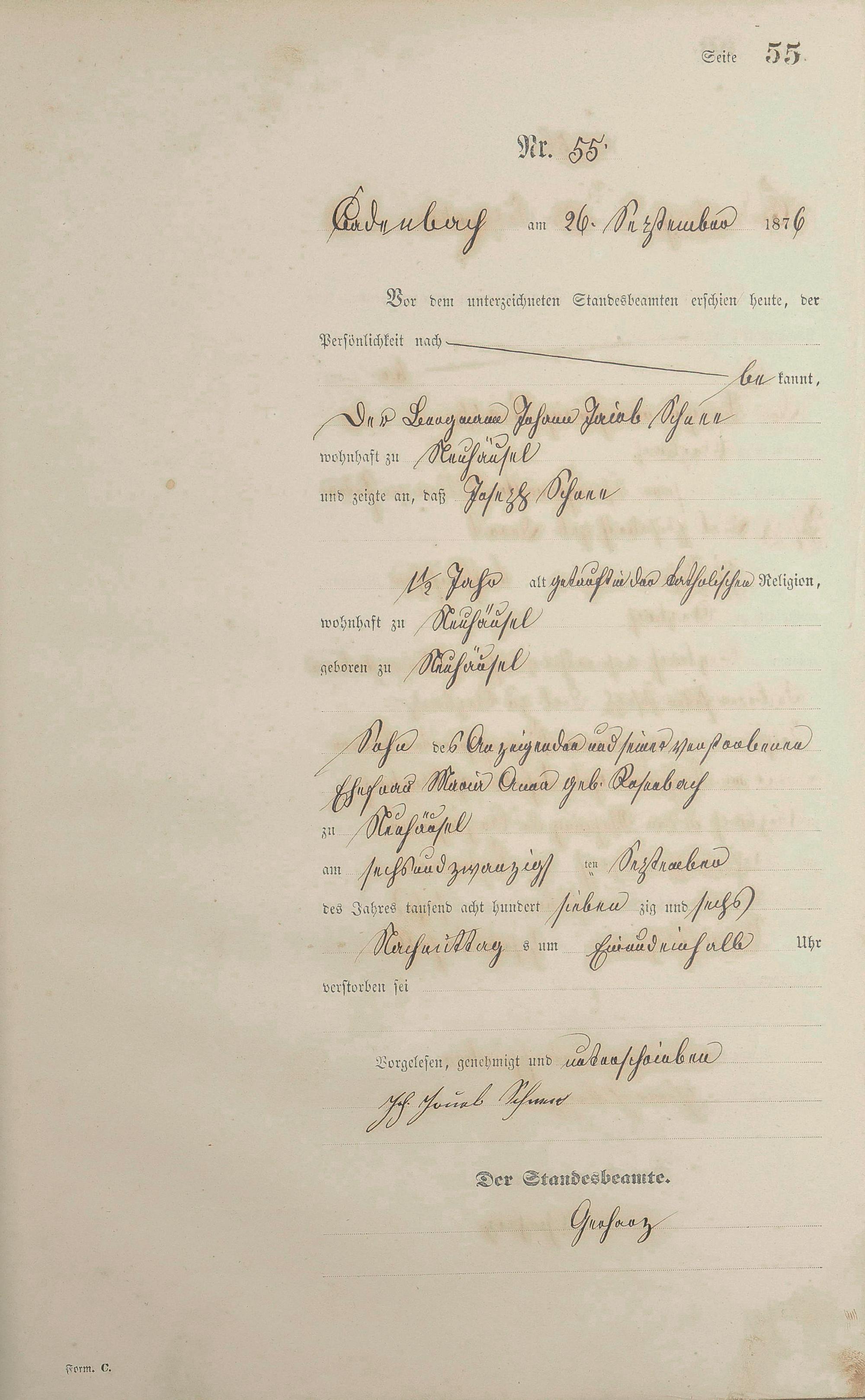 Sterberegister 1876
