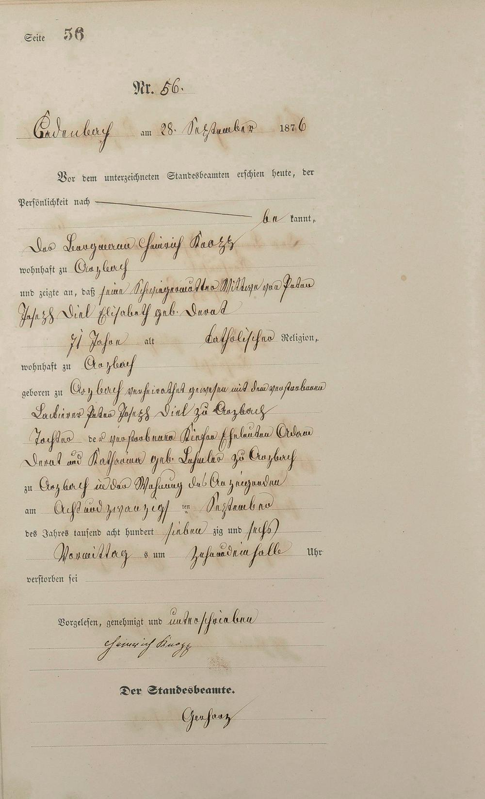 Sterberegister 1876