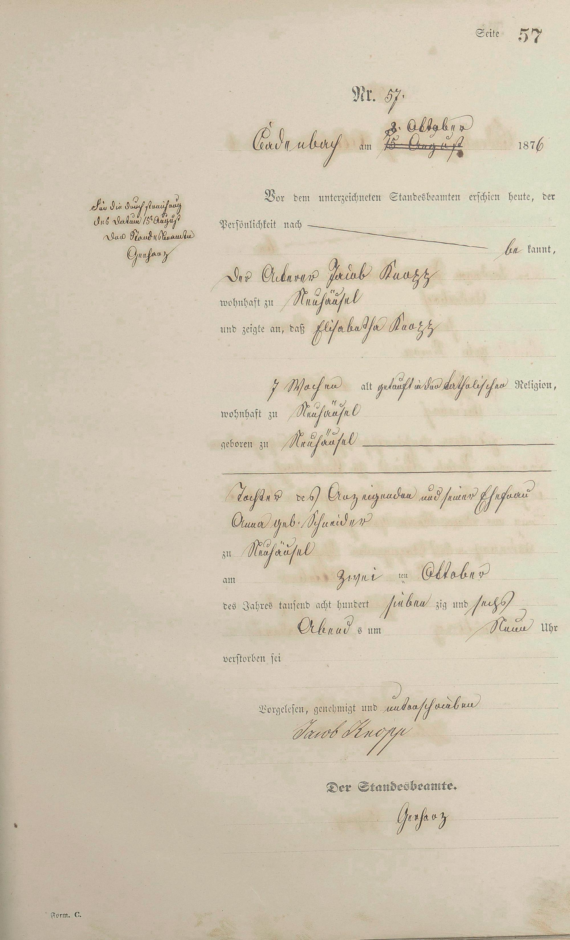 Sterberegister 1876