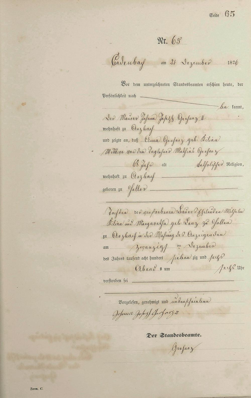 Sterberegister 1876