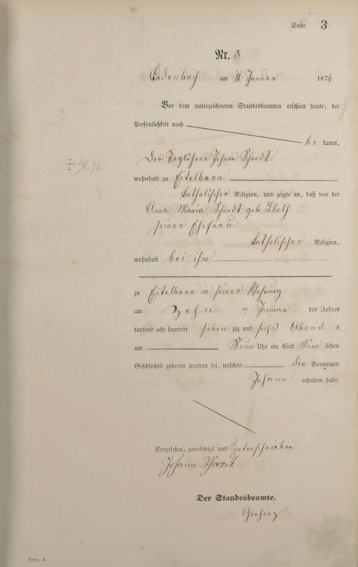 Geburtsregister 1876