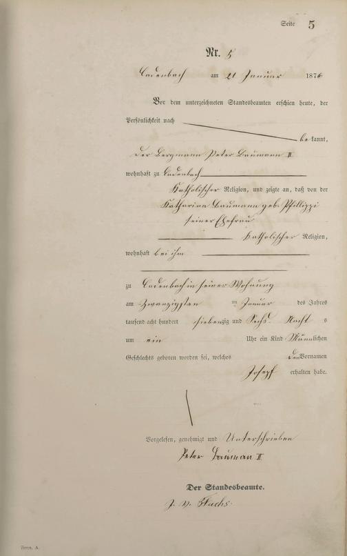 Geburtsregister 1876