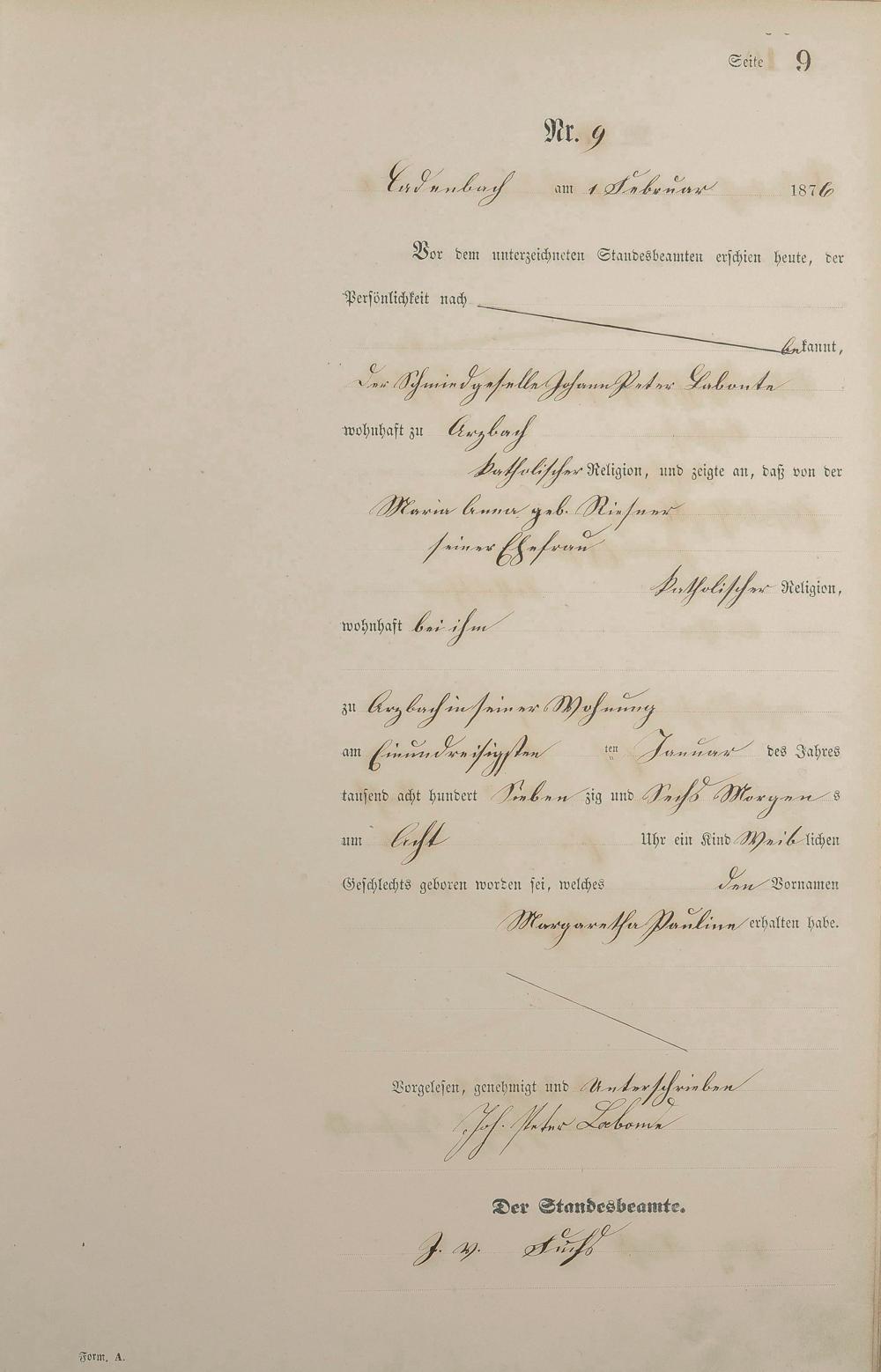 Geburtsregister 1876